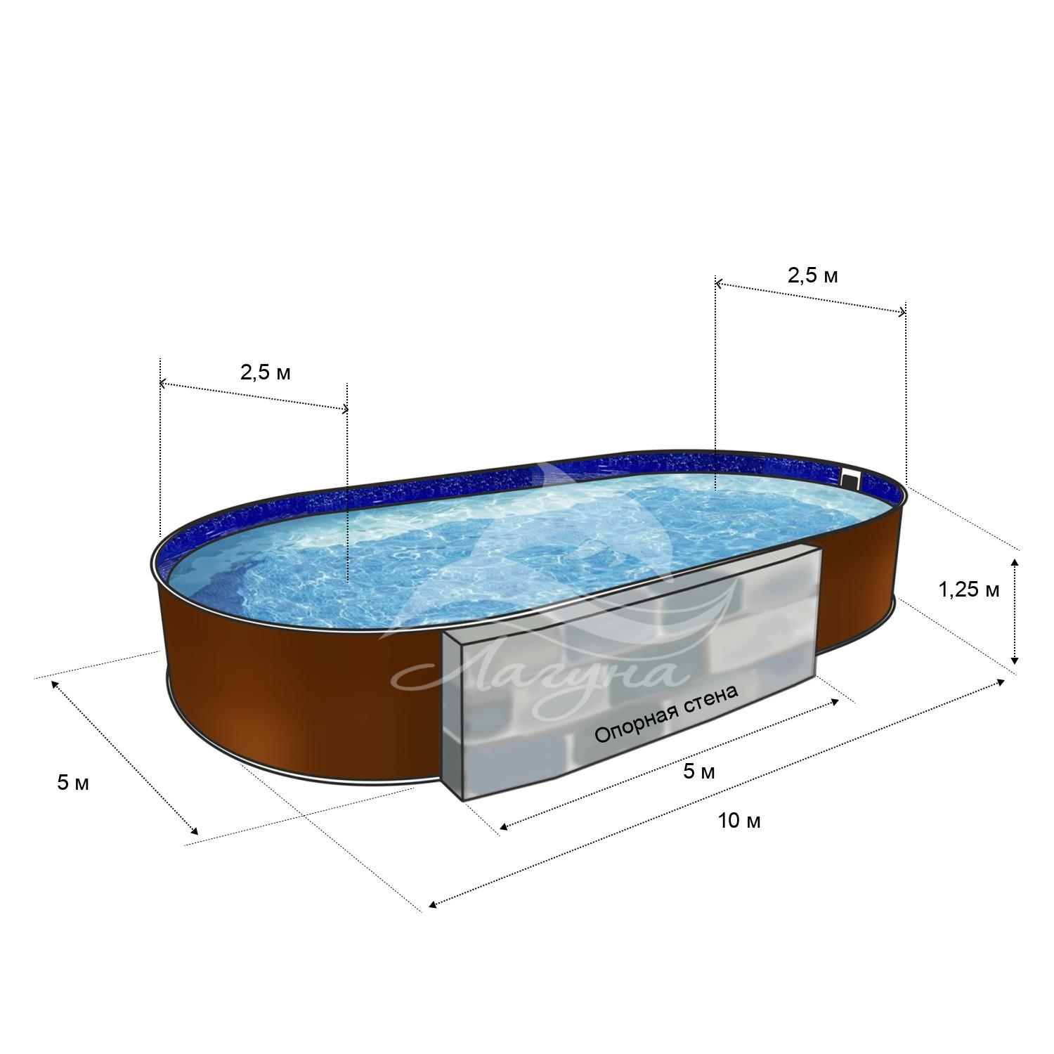 Морозоустойчивый бассейн ЛАГУНА российского производителя (г. Самара), размером 10 х 5 м. и высотой 1,25 м. Отлично подойдет для небольших участков и помещений. Можно использовать в качестве купели в бане.