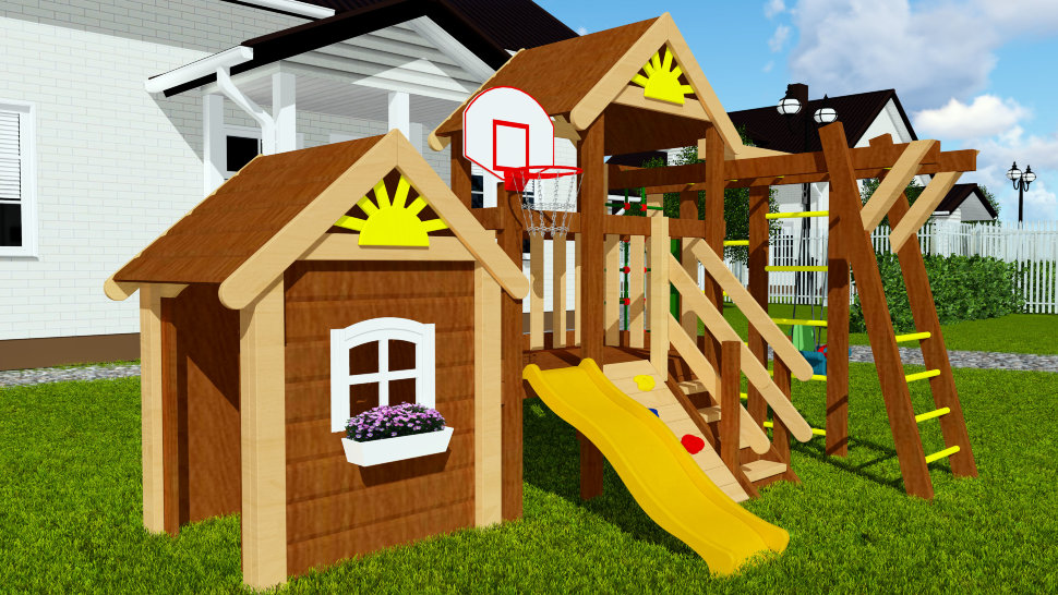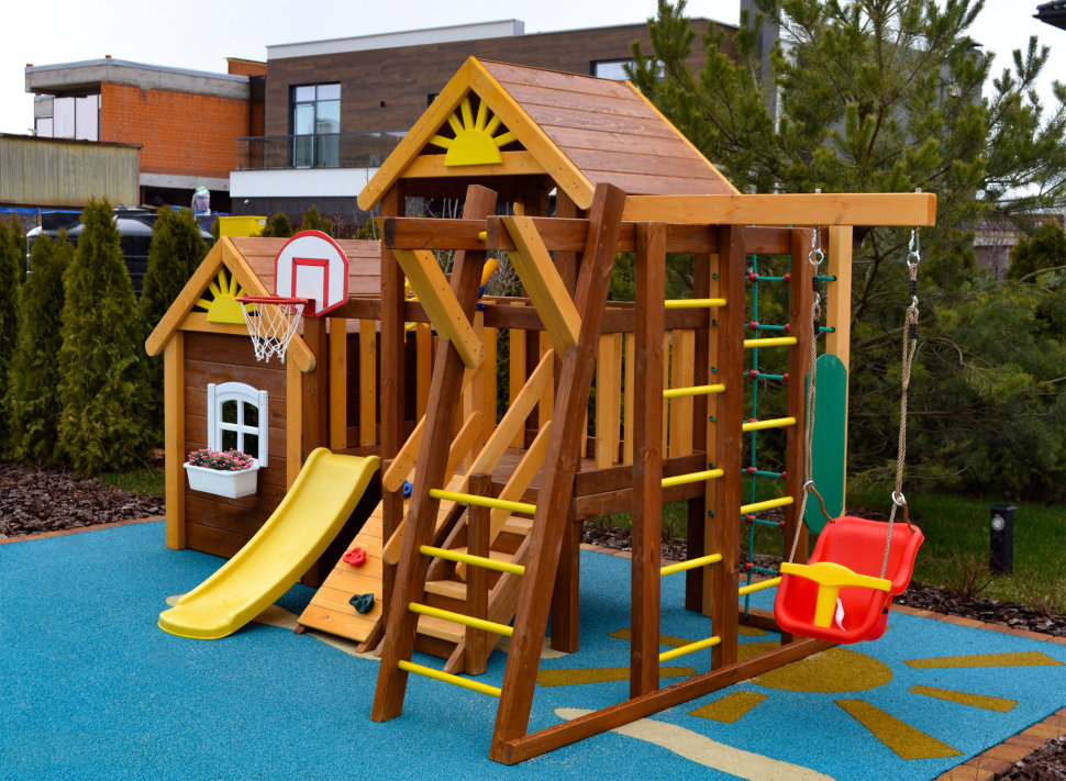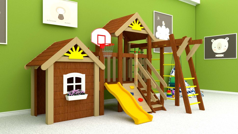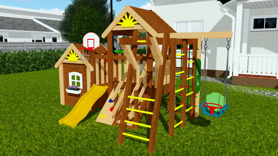 Baby Mark 3 – это детская площадка для малышей, в которой гармонично сочетаются различные спортивные зоны и развлекательный домик. Последний особенно нравиться малышам.
