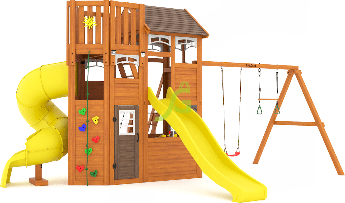 Обращаем Ваше внимание, что цвет установленной детской площадки может отличаться от представленных изображений на сайте. Специфика окраски нетоксичными пропитками допускает отклонения в цветовой гамме отгружаемых изделий вследствие различного цвета натурального природного сырья и естественных компонентов, используемых для производства площадок.