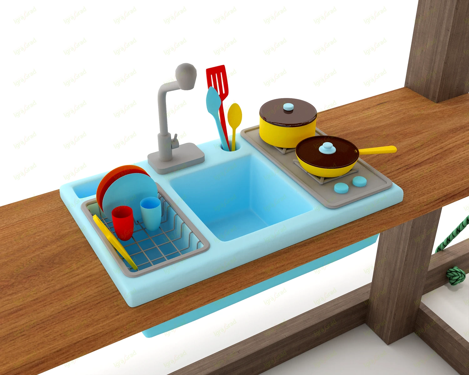 Якоря, столик с детской кухней, подушка и металлические перила на лестницу в комплект не входят. Приобретаются отдельно по желанию клиента.