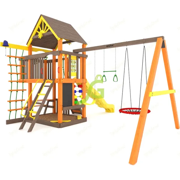 Обращаем Ваше внимание, что цвет установленной детской площадки может отличаться от представленных изображений на сайте. Специфика окраски нетоксичными пропитками допускает отклонения в цветовой гамме отгружаемых изделий вследствие различного цвета натурального природного сырья и естественных компонентов, используемых для производства площадок.