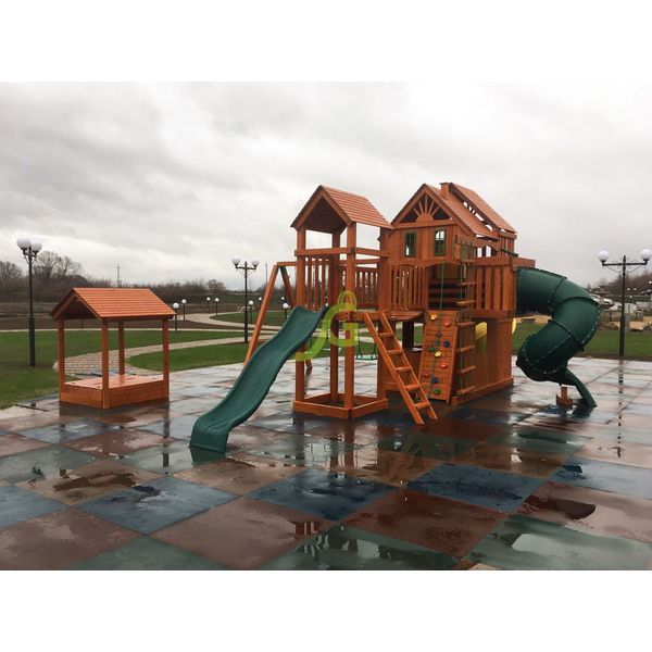 Обращаем Ваше внимание, что цвет установленной детской площадки может отличаться от представленных изображений на сайте. Специфика окраски нетоксичными пропитками допускает отклонения в цветовой гамме отгружаемых изделий вследствие различного цвета натурального природного сырья и естественных компонентов, используемых для производства площадок.