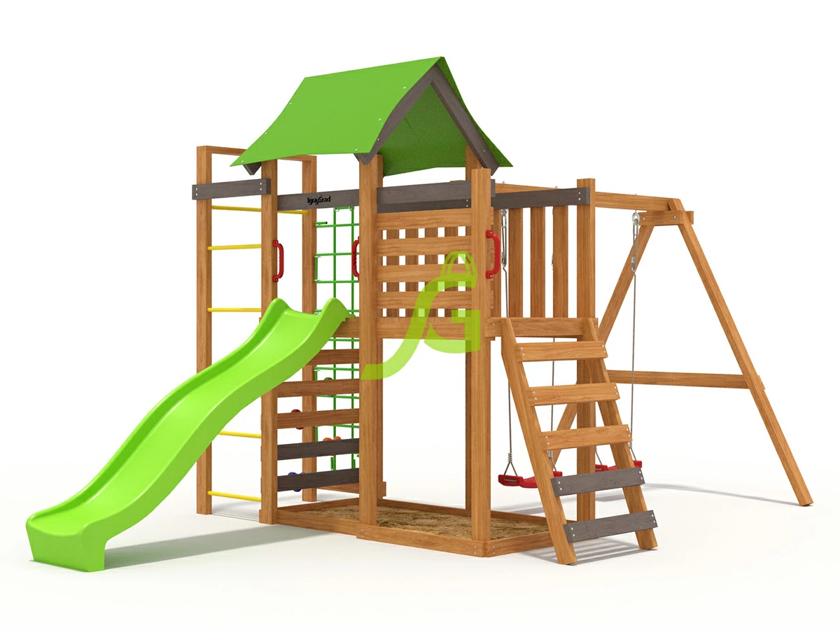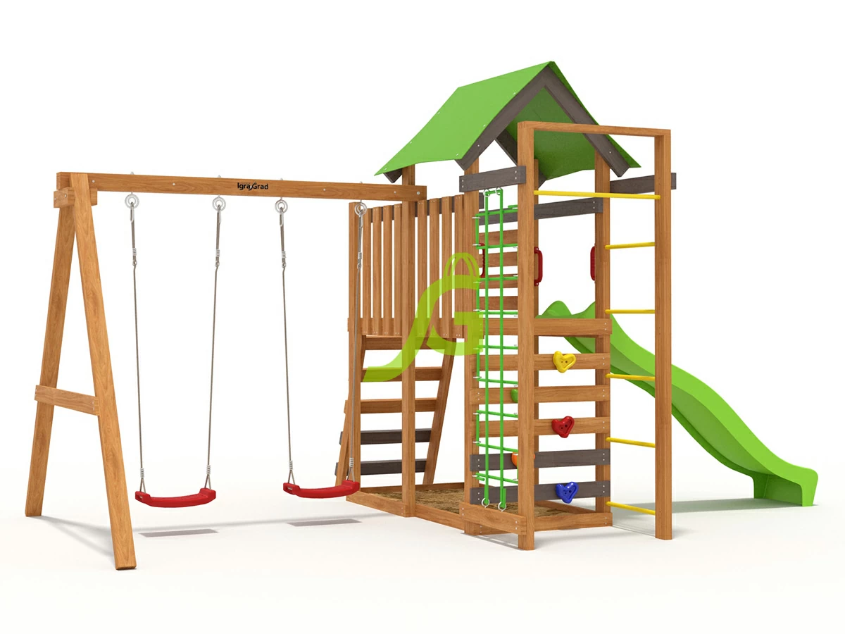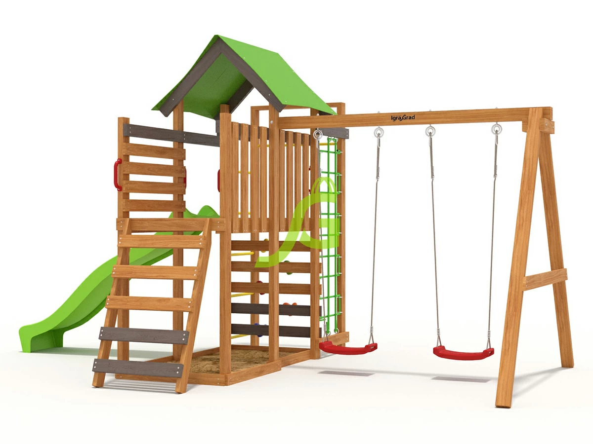 Детская игровая площадка IgraGrad W5 — мечта любого ребенка. Это оптимальный набор игровых и спортивных элементов для разновозрастных групп. Две качели, увеличенная игровая башня, скалодром, турник, песочница и лазалки: канат и сетка. Соотношение максимальной фунциональности и стоимости. При желании вы можете укомплектовать площадку дополнительными игровыми и спортивными аксессуарами. Игровой комплекс должен находиться в каждом дворе, ведь он помогает детям расти здоровыми и поддерживает их двигательную активность.