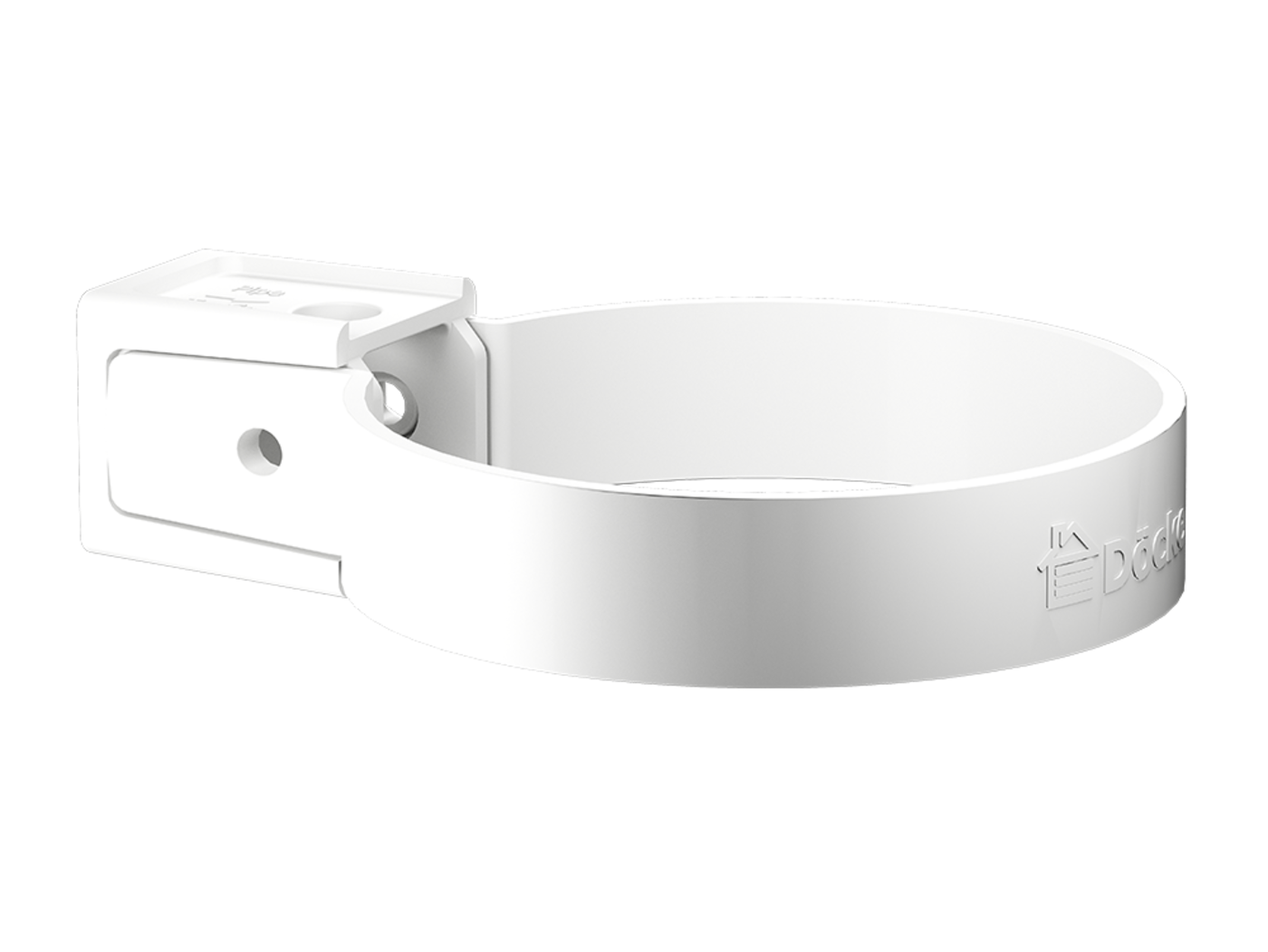 Хомуты и, в целом, все составные части водостоков изготовлены из прочного материала устойчивого к деформациям и окрашены в цвет «Пломбир». Нежный оттенок белого устойчив к выгоранию. Долговечные и надежные водостоки с гарантией производителя приобретайте у официальных дилеров.