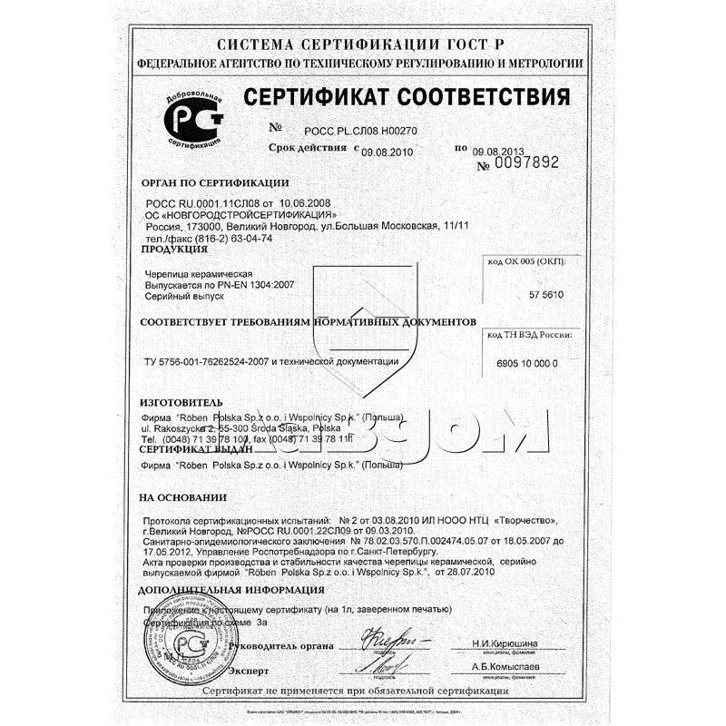 Керамическая рядовая черепица BRAAS Рубин 9V каштан глазурь