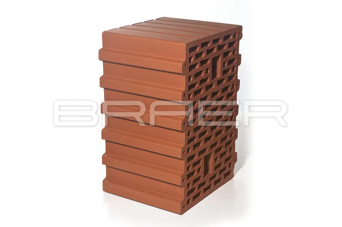 Отличные теплотехнические характеристики крупноформатных керамических блоков БРАЕР достигаются за счет высокого процента пустотности – (около 59%), поризованной структуры камня и наличия системы паз-гребень.