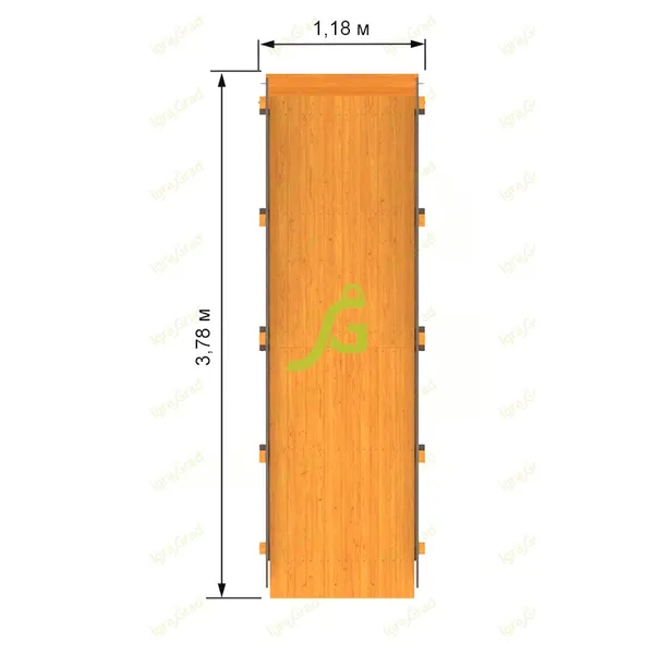 Детская площадка “IgraGrad Великан 4 (Макси) мод.2” включает: – конструкция двухуровневого зашитого снизу домика из клееного бруса 100х100 мм; –
