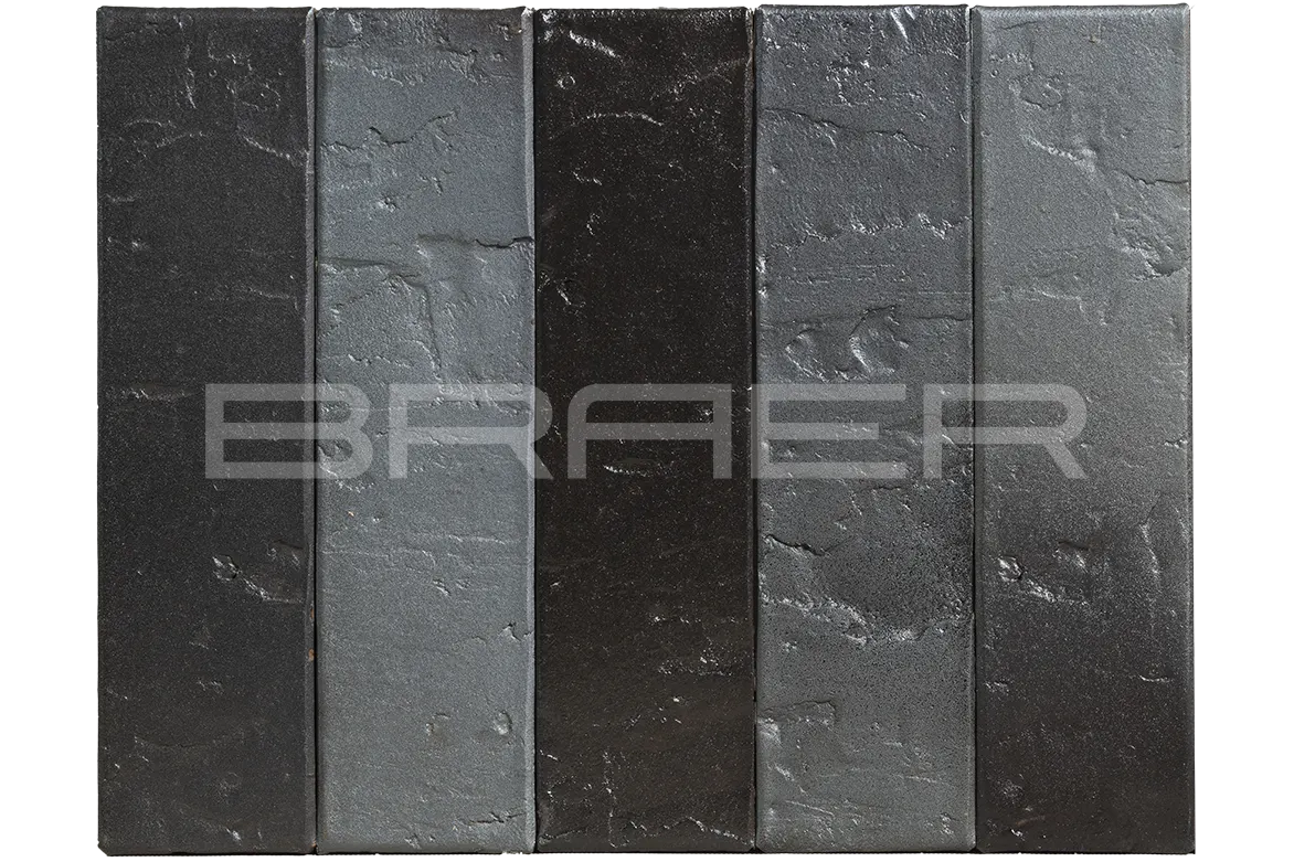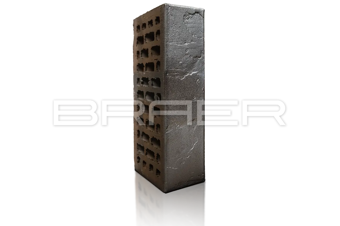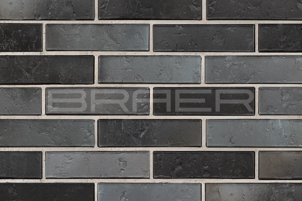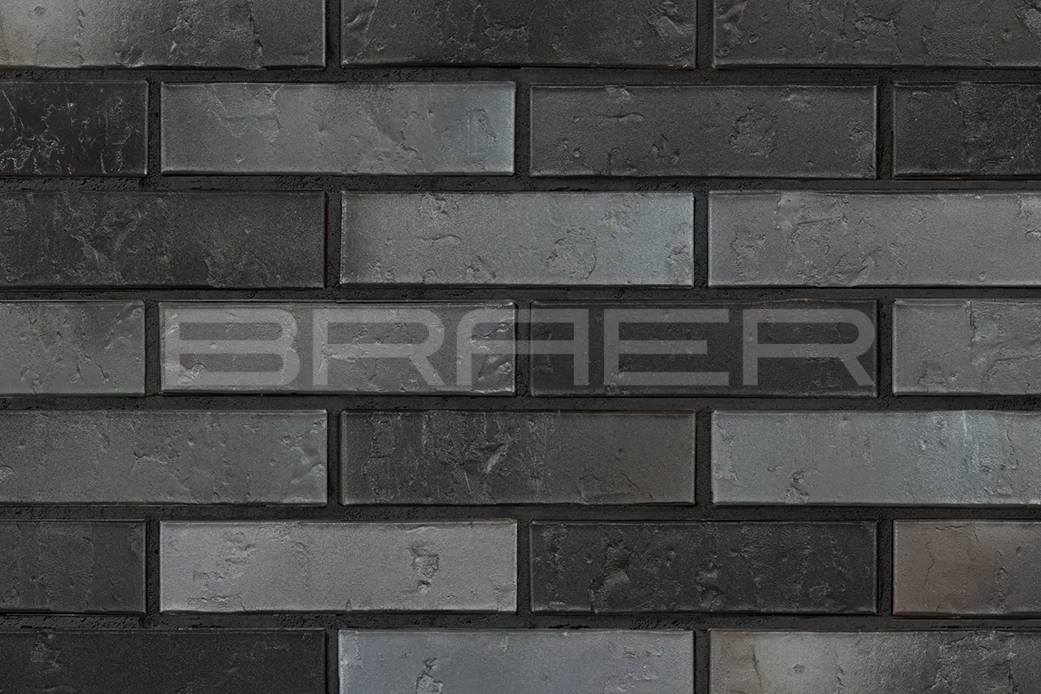 Самый темный кирпич в коллекции BRAER PRO. Пигмент от темно-серого до угольно-черного оттенка. Кладка содержит кирпичи с глянцевым покрытием и холодным матовым металликом. Выпускается в формате 1НФ.