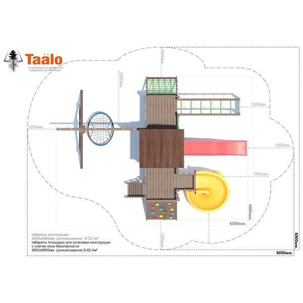 Габариты площадки, требования к установке: площадка 9050х6900мм. (длина/ширина); S-62,4м?.