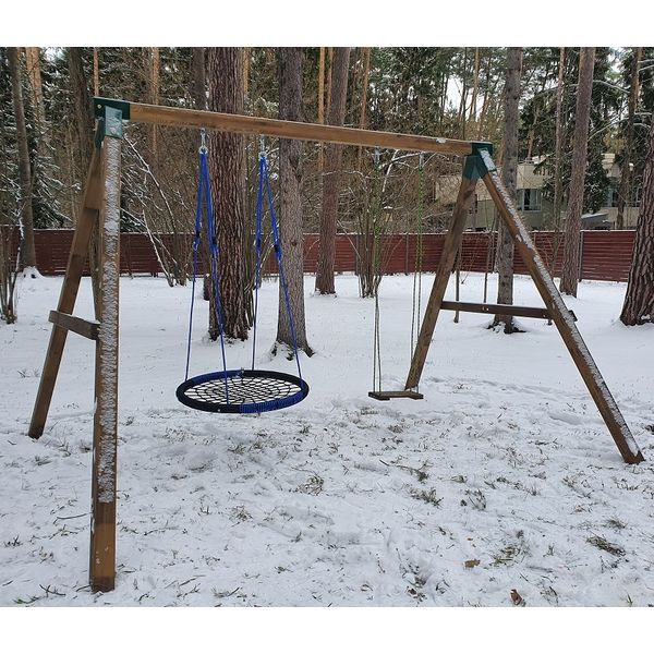 Качели предназначены для круглогодичного пользования, элементы конструкции устойчивы к воздействию окружающей среды (влажность, перепады температур, грибок, насекомые).