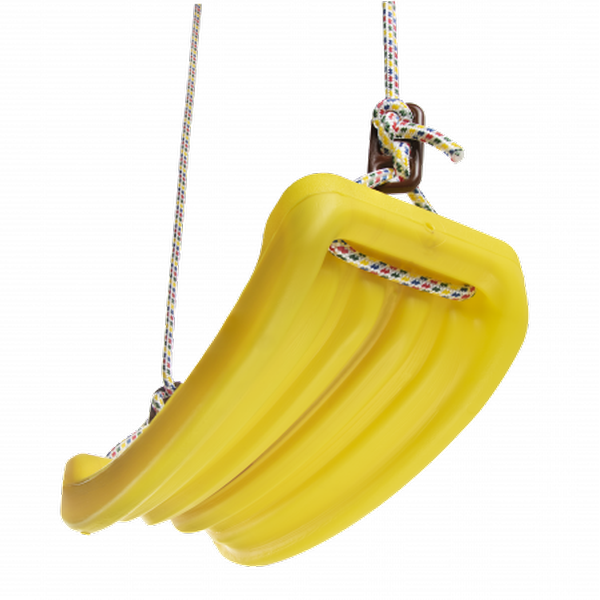 Сидение качели имеет изогнутую форму в виде лодочки, а также рельефную поверхность; жесткое, ударостойкое, имеет защиту от воздействия солнца и атмосферных осадков (круглогодичная эксплуатация на улице). Такая конструкция надёжно удерживает ребёнка на сидении и препятствует его скольжению. Сиденье качелей зафиксировано на прочных и износостойких канатах из полипропилена d10мм., надежные пластиковые фиксаторы позволяют регулировать длину каната. Рекомендуемая нагрузка на сидение не более 50кг., крепление на высоту 2200мм., расстояние от сидения до поверхности площадки не менее 400мм. Сидение поставляется в собранном виде.