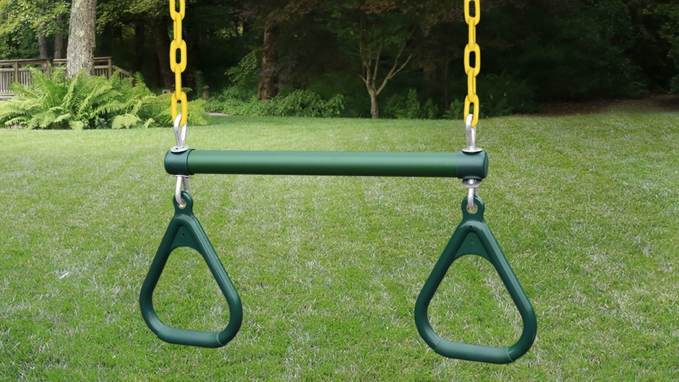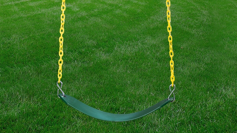 – пара стандартных пластиковых качелей на цепях, покрытых пластиковой оболочкой;
