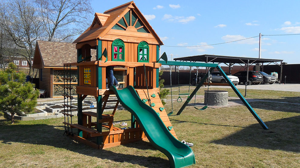 Универсальный дизайн площадки и нейтральная расцветка позволяют ей гармонично вписываться в любой ландшафт — она будет отлично смотреться на загородном участке.