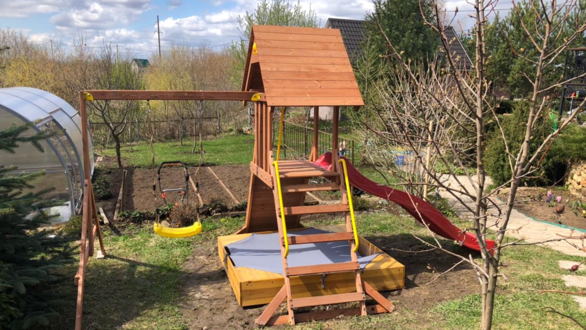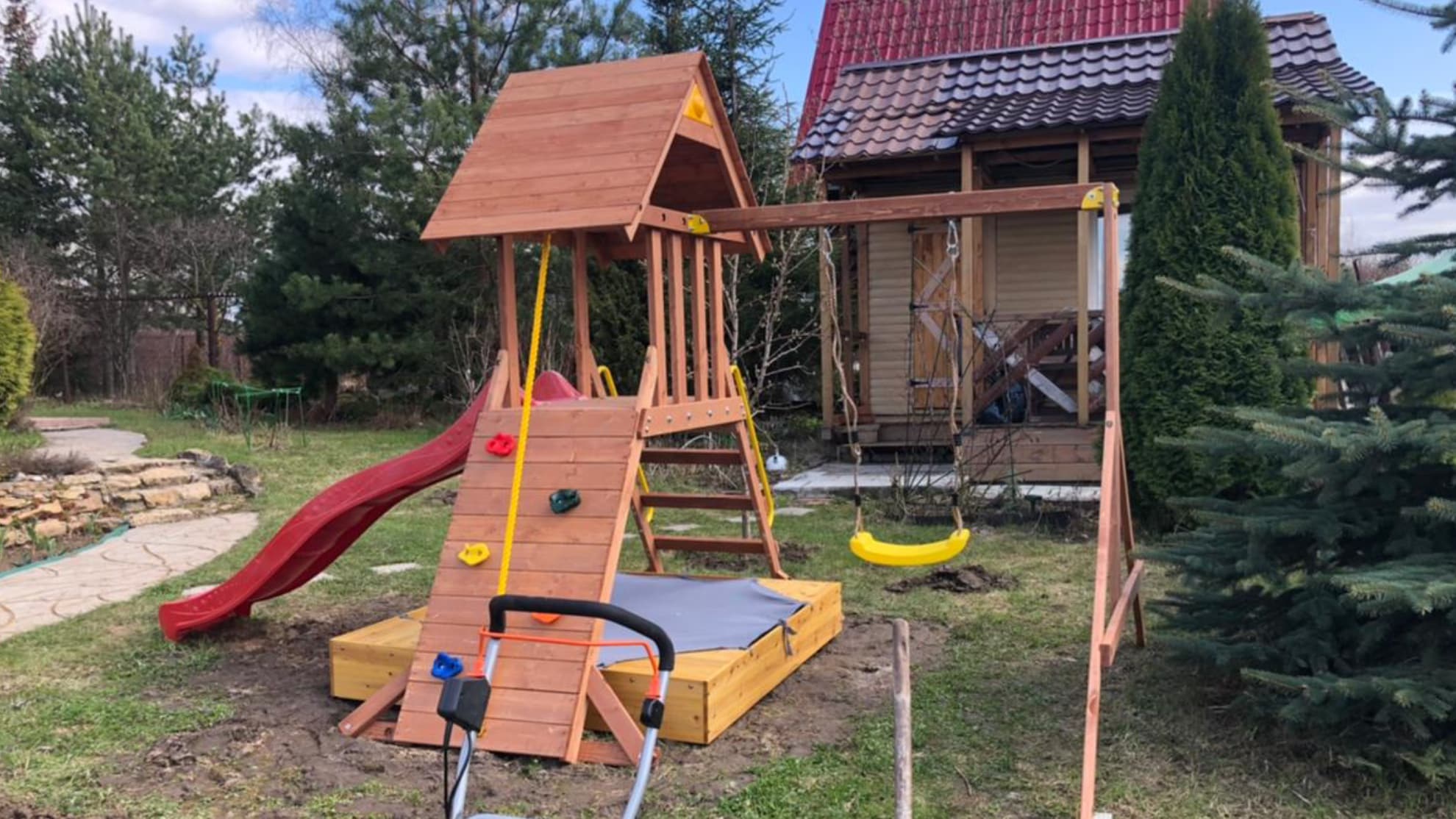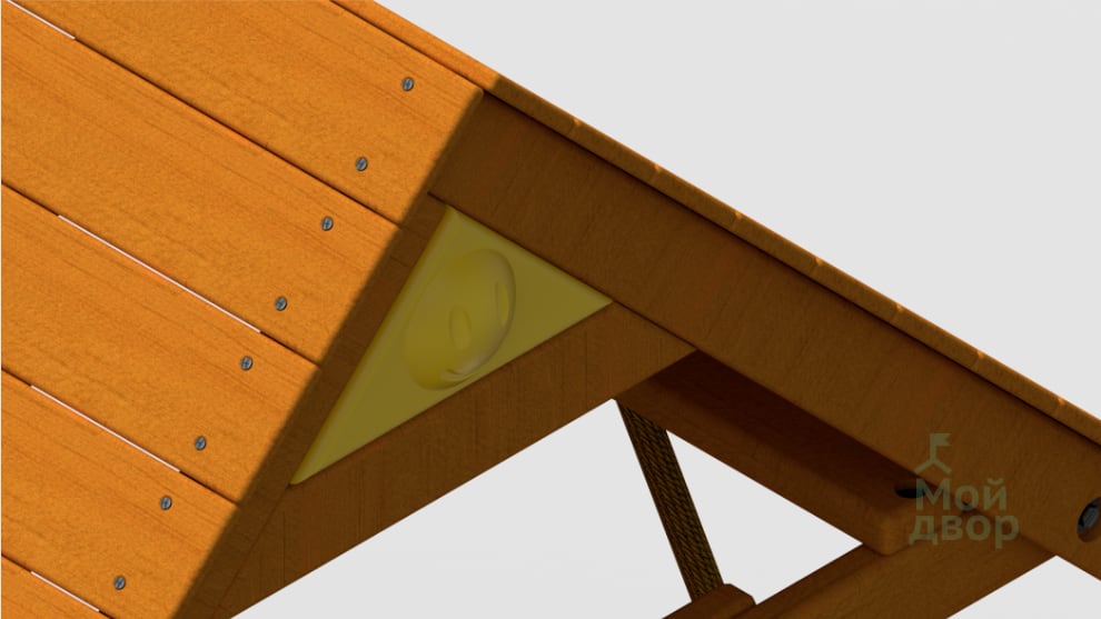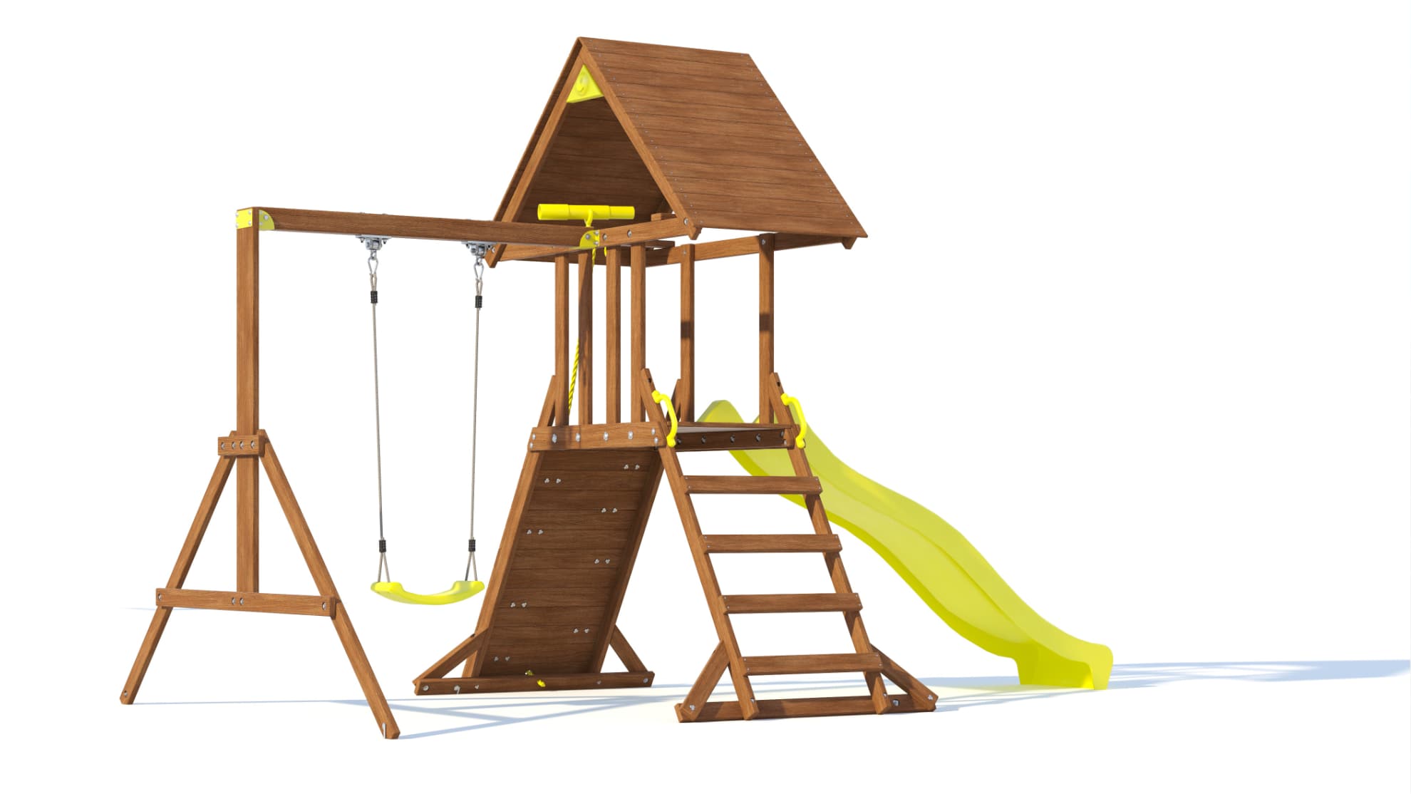 Спортивно-игровой комплекс изготовлен из цельной древесины сосны, тщательно просушенной и обработанной пропиткой против гниения и насекомых.