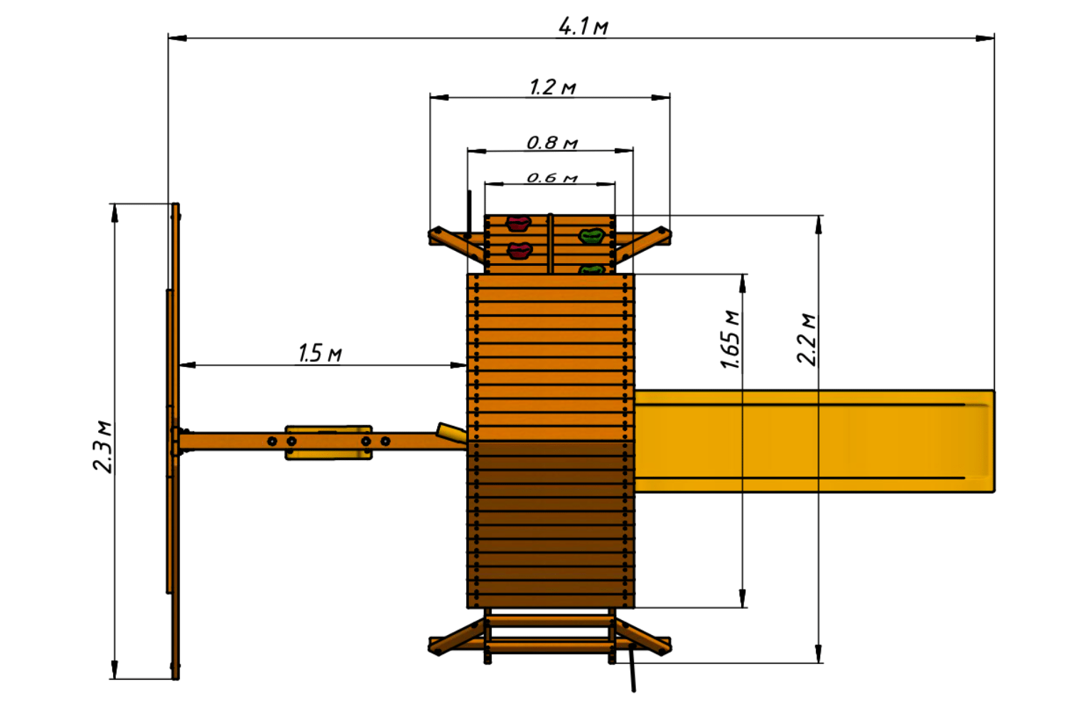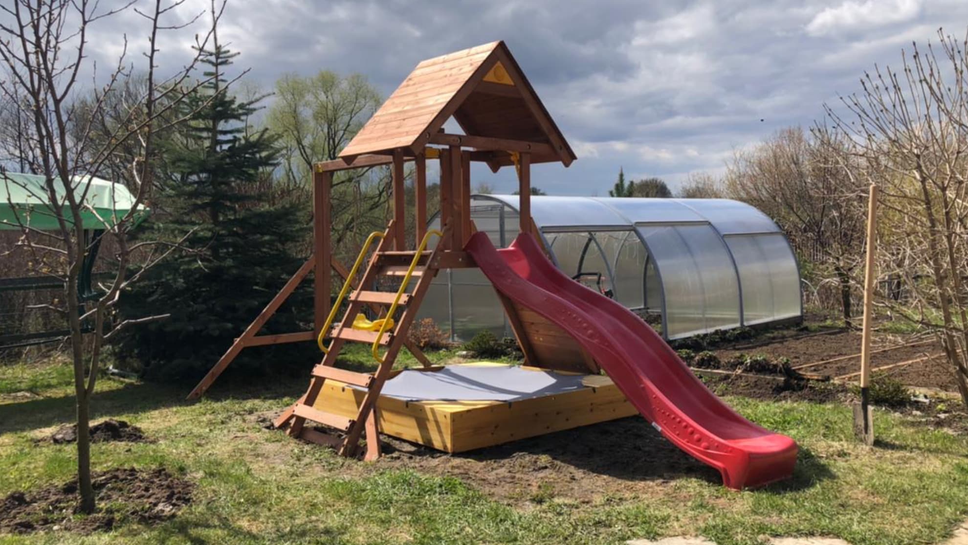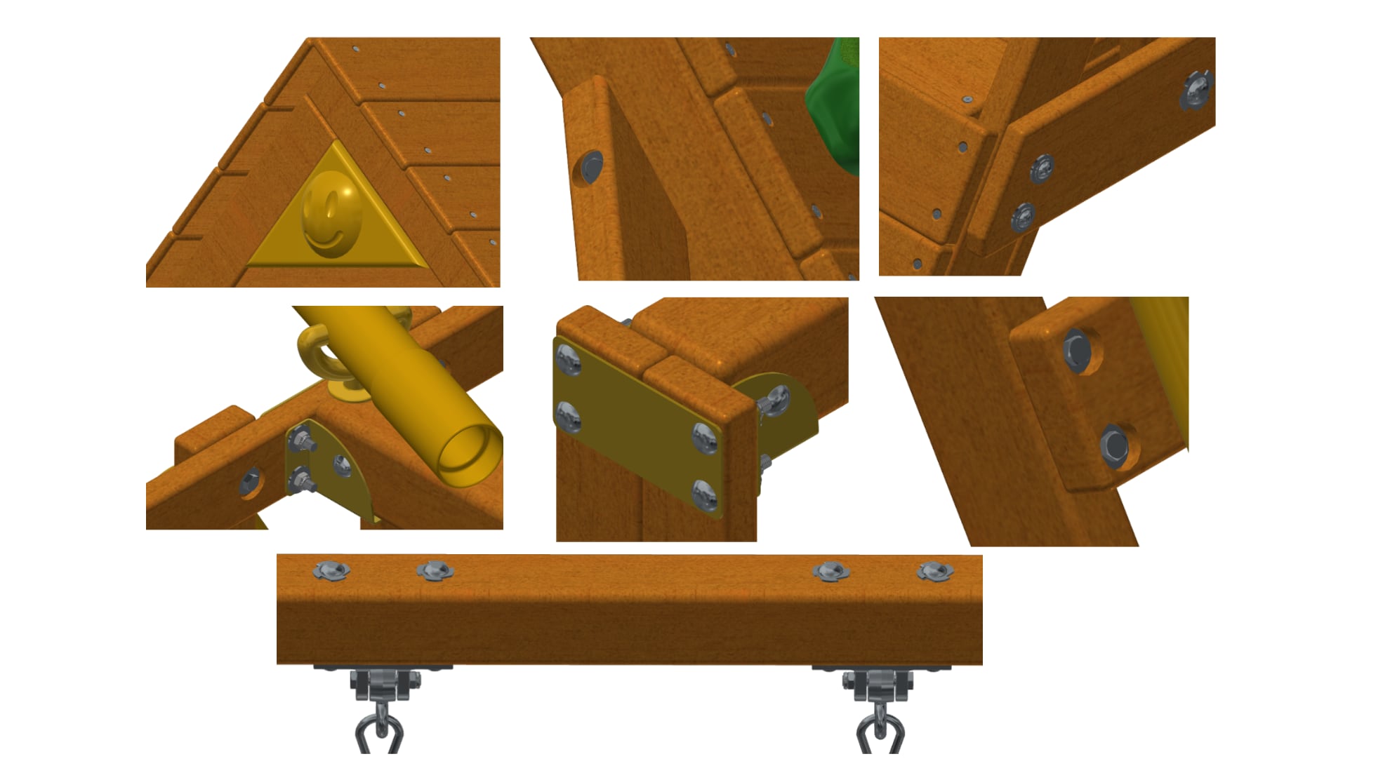 Спортивно-игровой комплекс изготовлен из цельной древесины сосны, тщательно просушенной и обработанной пропиткой против гниения и насекомых.