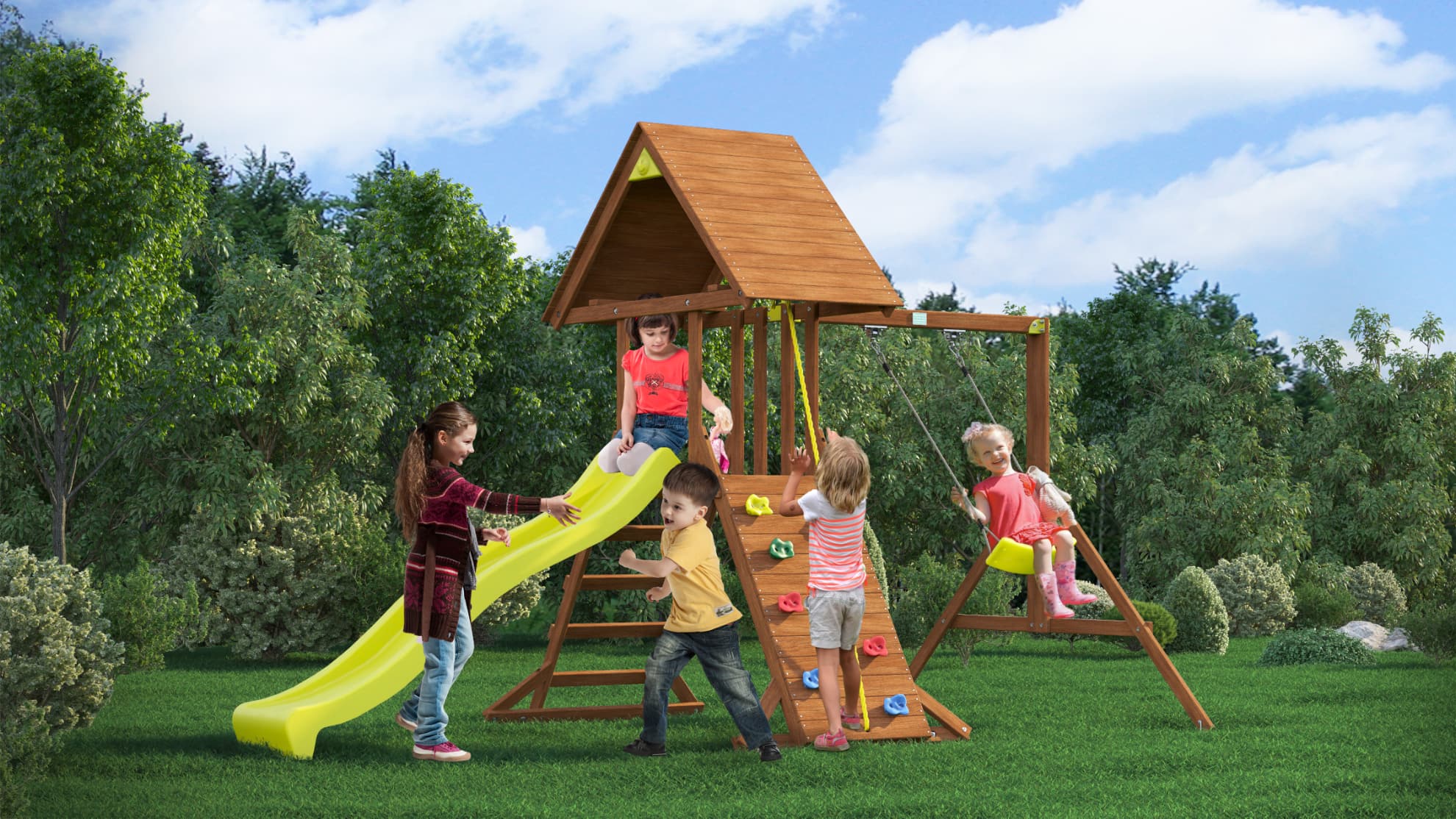 Спортивно-игровой комплекс MoyDvor Крепость свободы со скалодромом, горкой и качелями отлично подходит для организации детского досуга на свежем воздухе.
