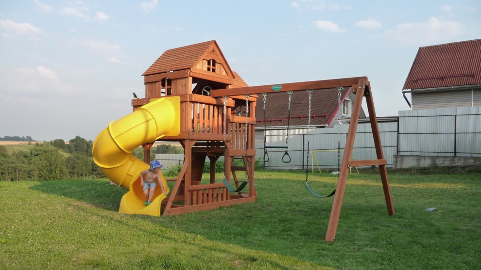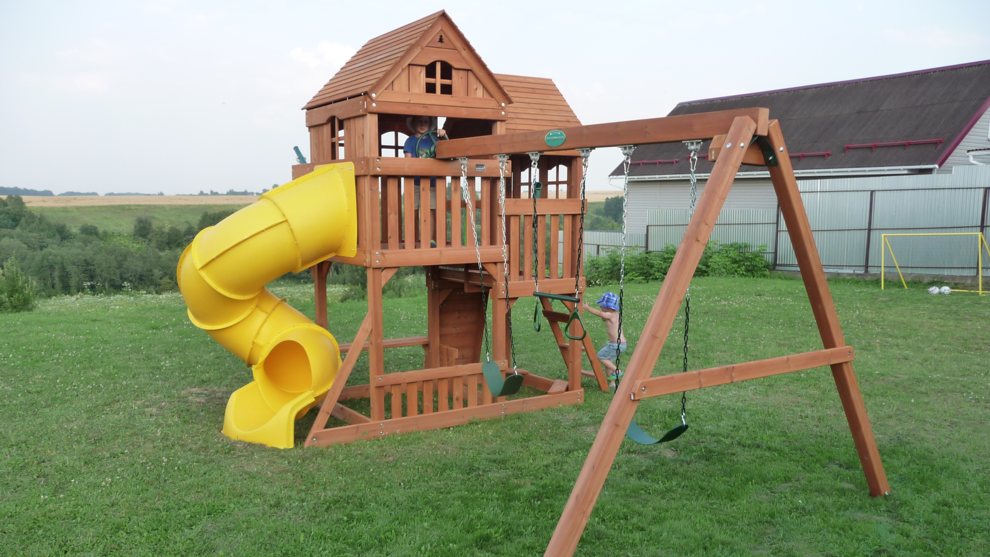Спортивно-игровой комплекс «ПАНОРАМА» c винтовой трубой отлично подходит для организации детского отдыха. Она универсальная и позволяет малышам проводить время так, как им хочется: качаться на качелях, общаться, играть в сюжетные игры, устраивать пикники и спортивные соревнования на свежем воздухе. Спортивно-игровой комплекс изготовлен из обработанного антисептическими составами качественного дерева, которое не теряет своей прочности и красоты под воздействием влаги и ультрафиолета. Конструкция тщательно продумана с точки зрения детской безопасности.