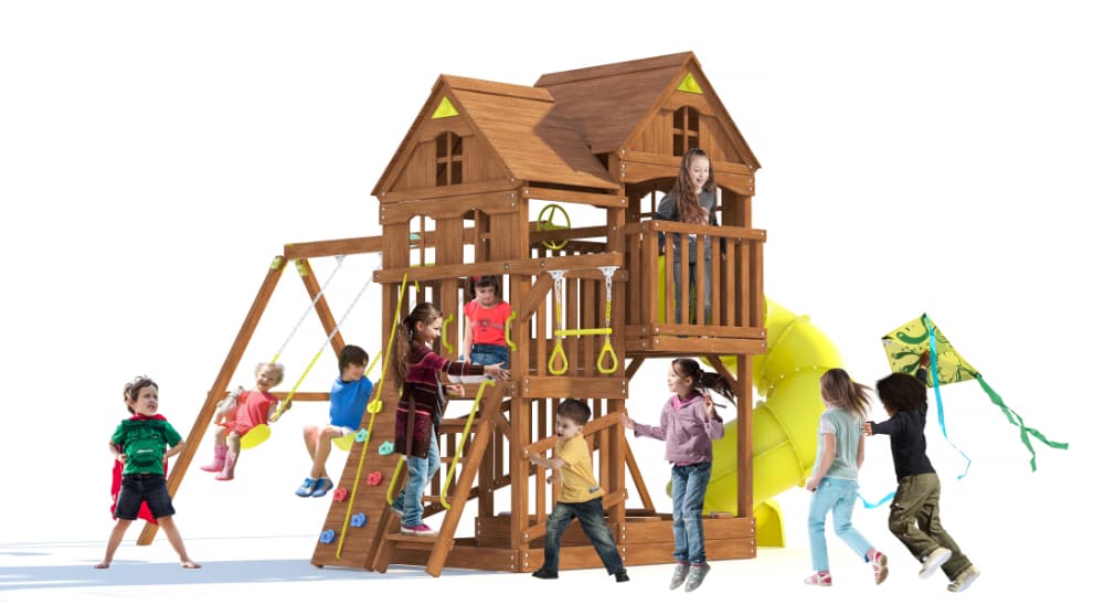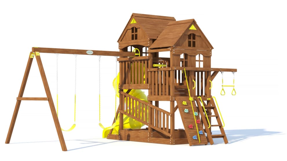 Спортивно-игровой комплекс производят из высококачественной сосны из Сибири. Брус сушат до влажности 12%, что на 30% повышает долговечность и срок эксплуатации. Все деревянные поверхности покрывают тремя слоями безопасной антисептической пропитки на водной основе для ещё большей защиты от неблагоприятного воздействия окружающей среды и осадков.