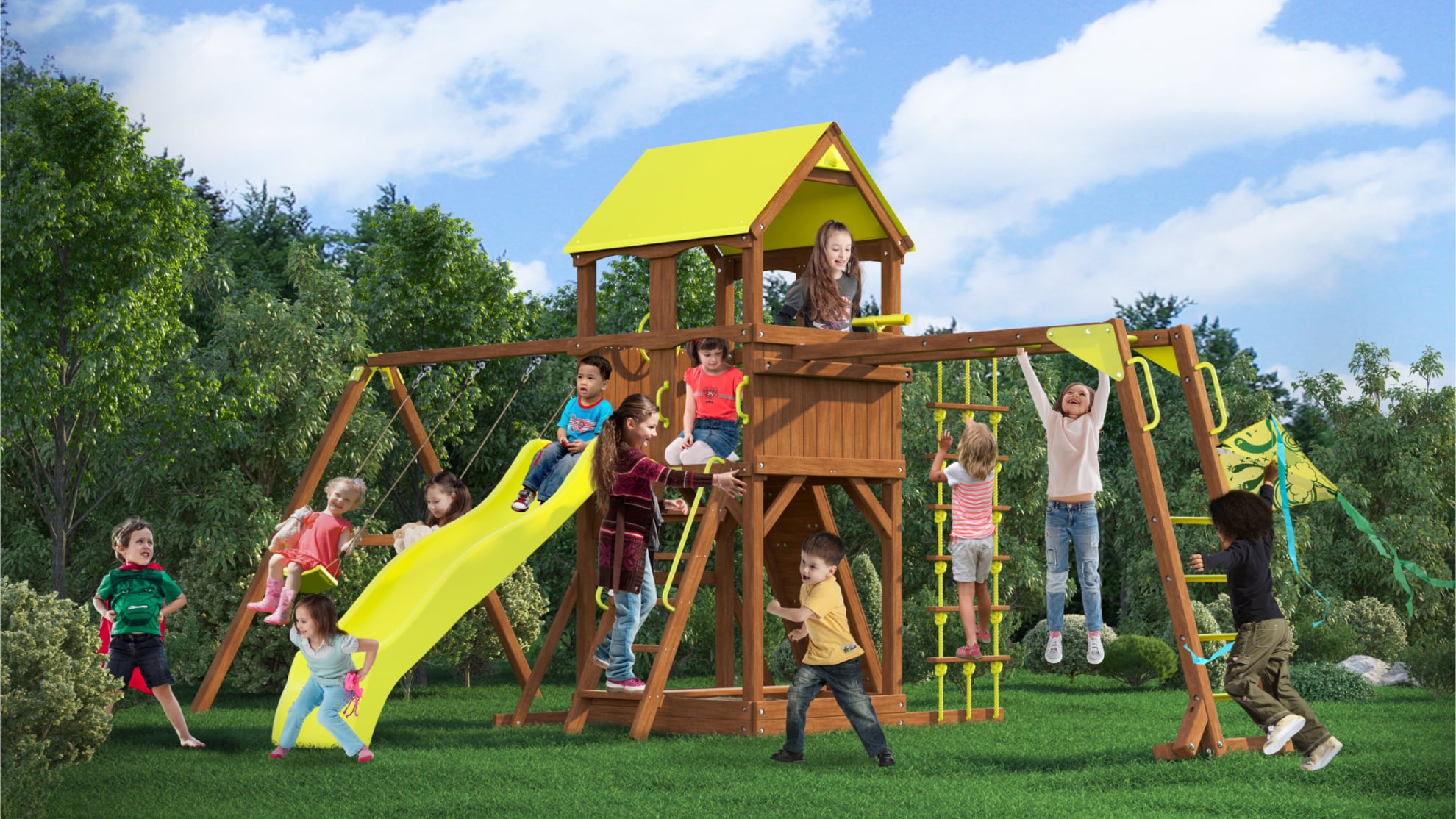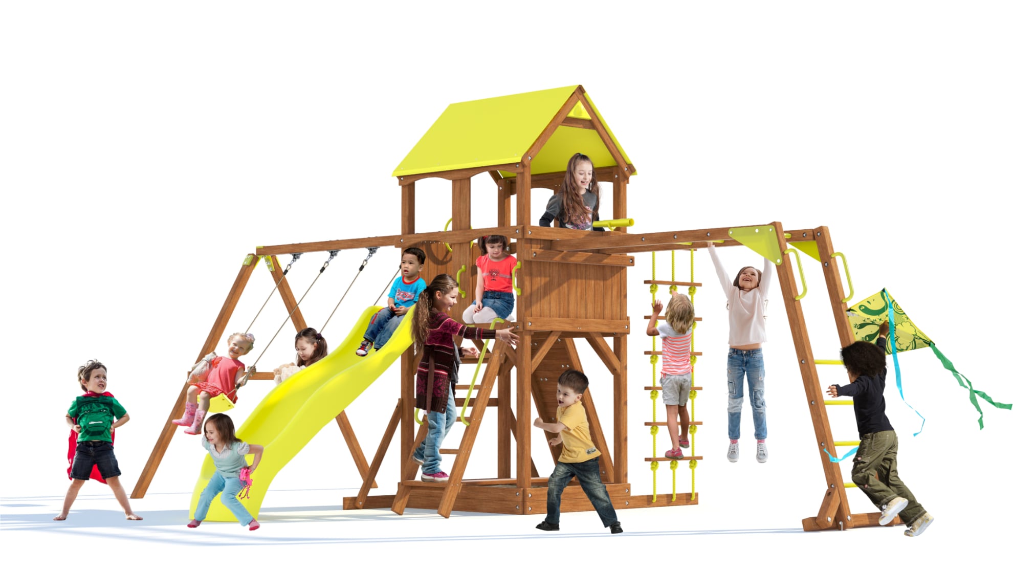Спортивно-игровой комплекс комплектуется прочным безопасным пластиковым спуском с высокими бортами.