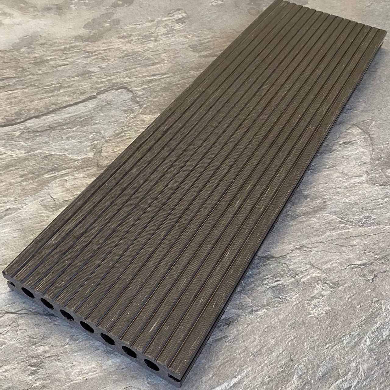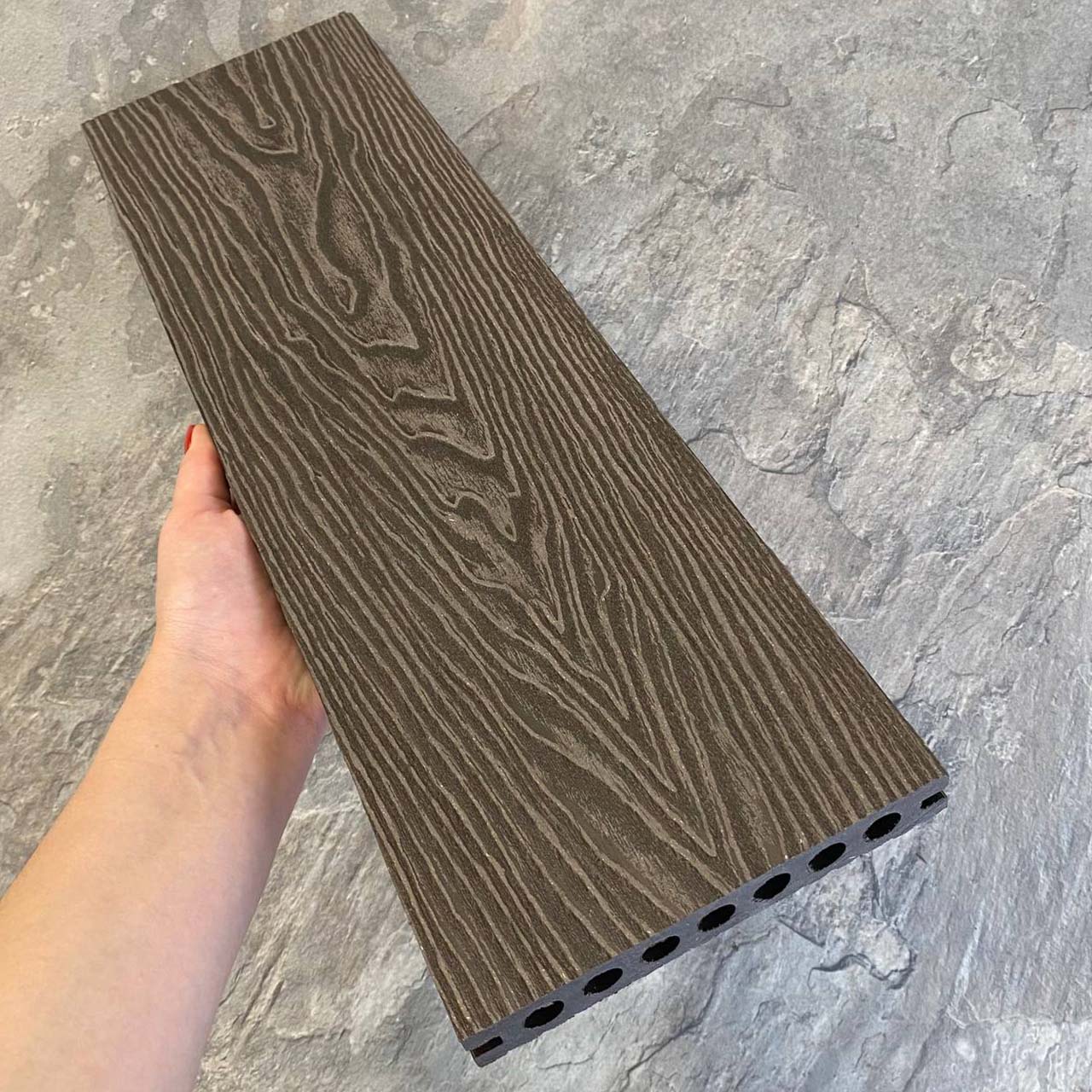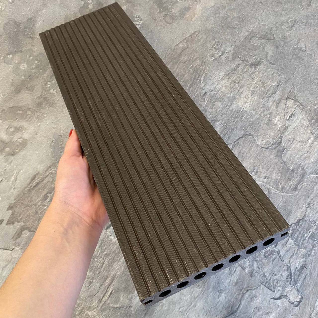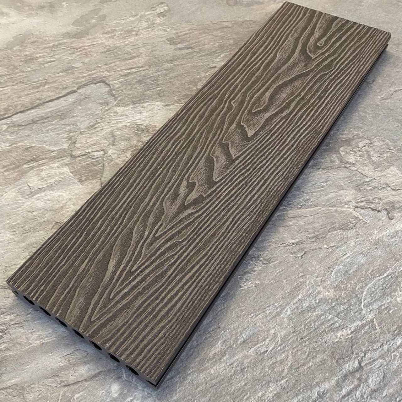 Террасная доска Latitudo PRO 2 из древесно-полимерного композита ДПК. Пустотелая. Доступные размеры, мм: 145х22х3000, 145х22х4000, 145х22х6000. Длина 3, 4 и 6 метров. Поверхности: одна сторона с рельефной 3Д фактурой под дерево, другая сторона вельвет. Доступно 4 цвета.