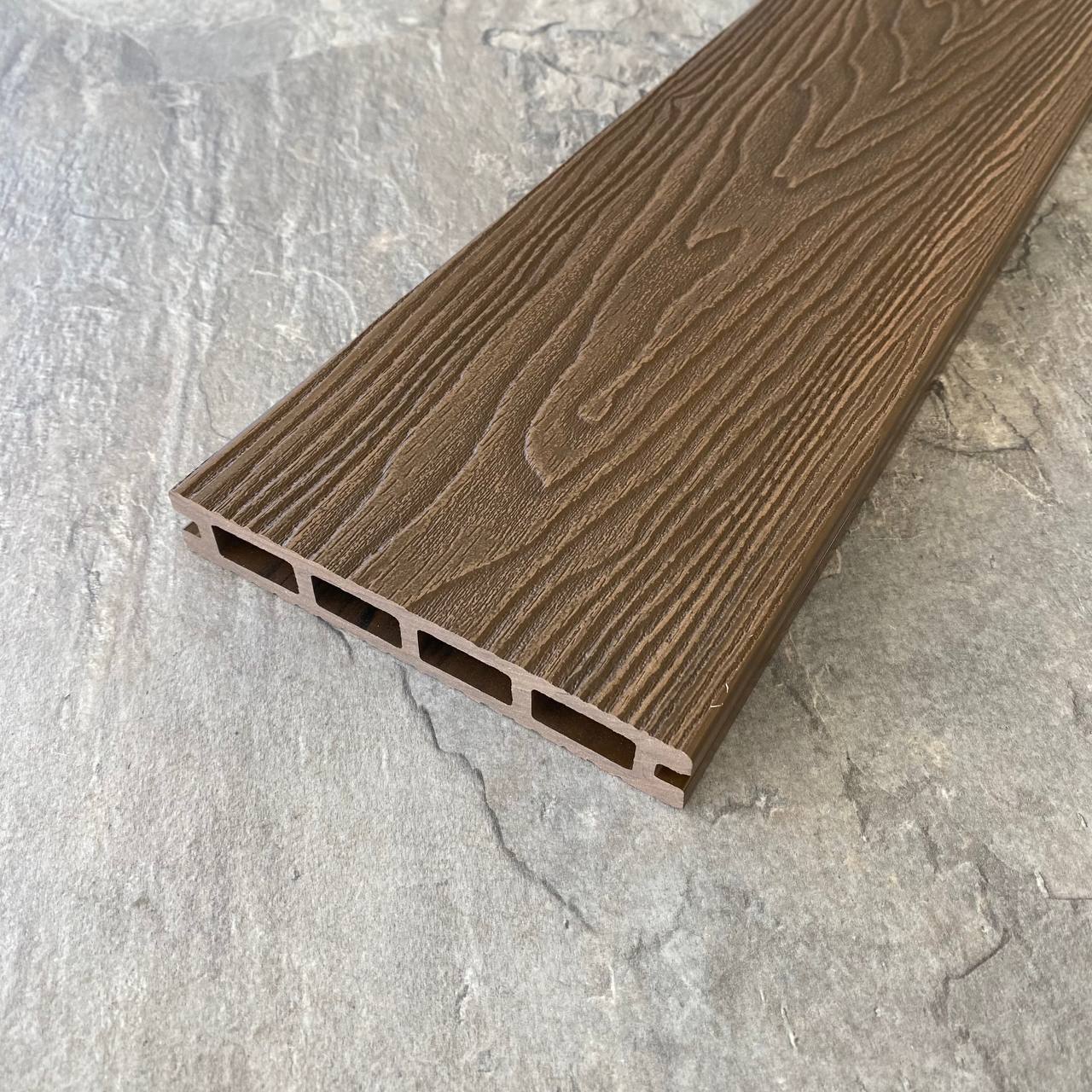 Террасная доска ТimberTEX Style из древесно-полимерного композита ДПК. Пустотелая. Доступные размеры, мм: 146х23х3000, 146х23х4000. Длина 3 и 4 метра. Поверхности: одна сторона с рельефной 3Д фактурой под дерево, другая сторона вельвет. Доступно 5 цветов. Фирменные комплектующие в цвет: уголок, торцевая заглушка, ступени, подступенок, ограждения.