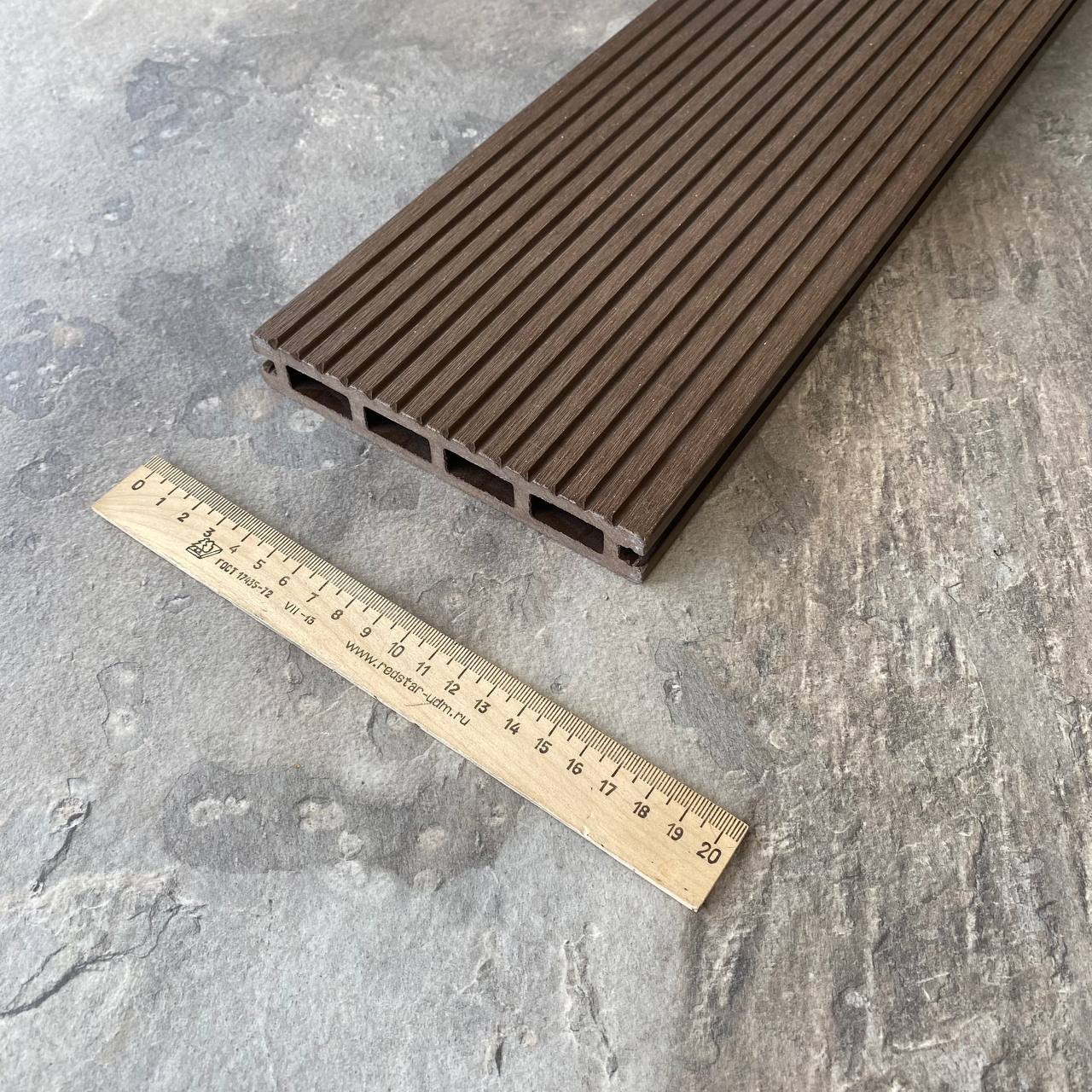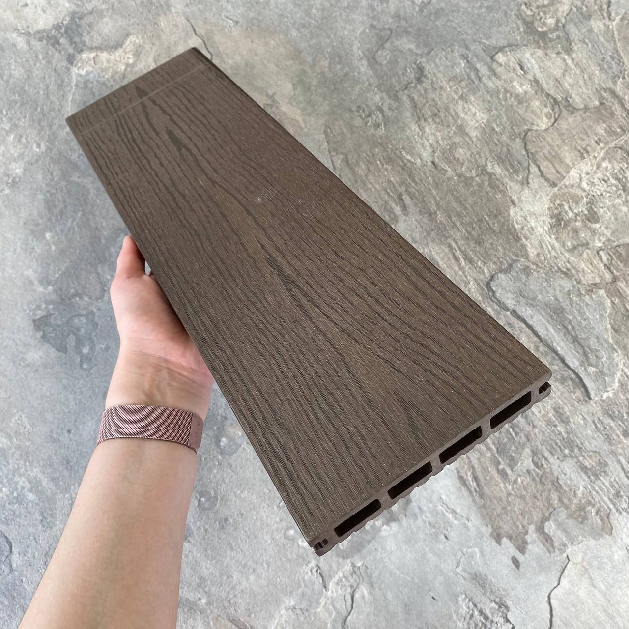 Террасная доска Woodvex Select из древесно-полимерного композита ДПК. Пустотелая. Доступные размеры, мм: 146х22х3000, 146х22х4000. Длина 3 и 4 метра. Поверхности: одна сторона с тиснением под дерево, другая сторона вельвет. Доступно 5 цветов. Фирменные комплектующие в цвет: уголок, торцевая заглушка, торцевая планка, финишная доска, ступени, плинтус.