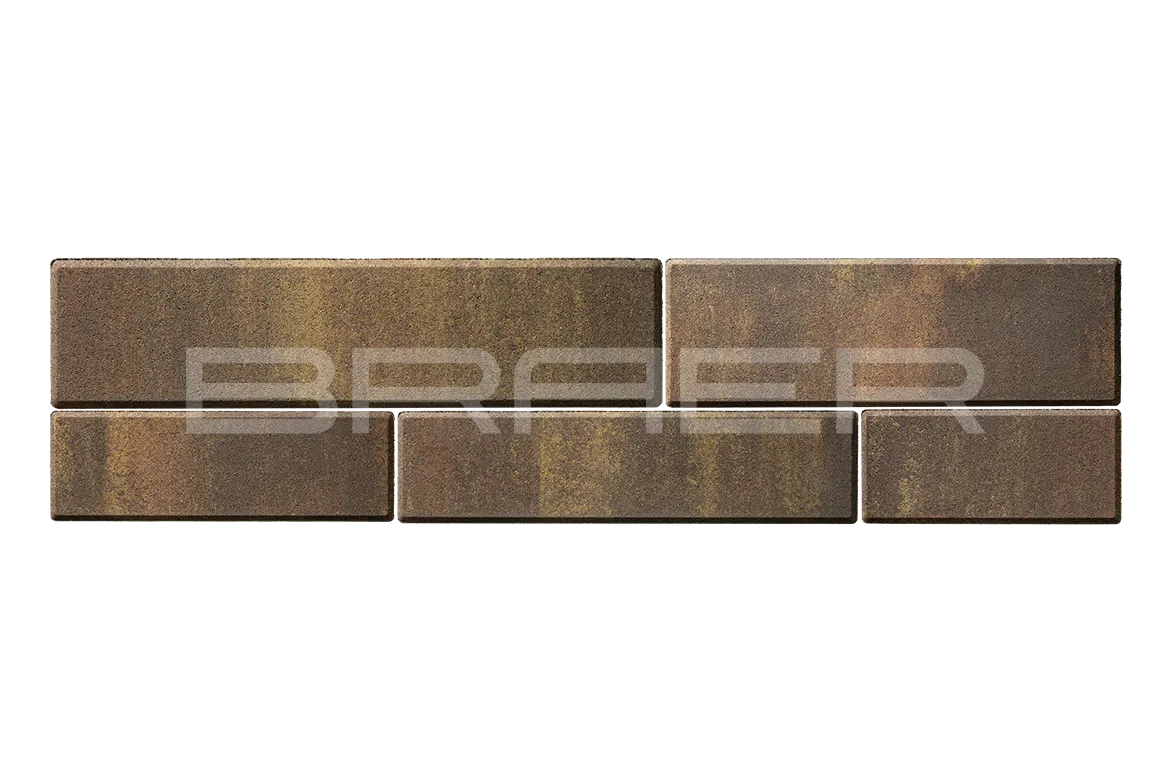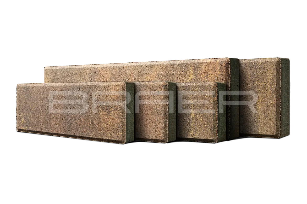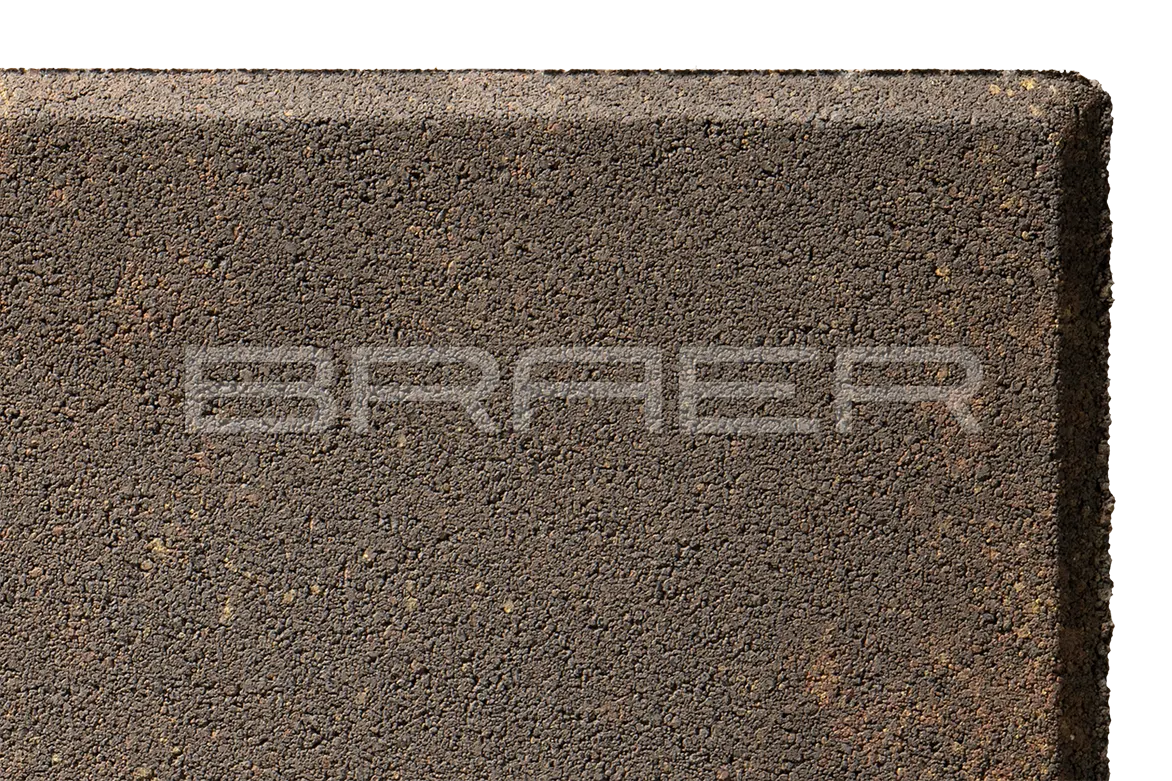 Тротуарная плитка BRAER состоит из 2 слоев: основного и лицевого. Технология двойного вибропрессования позволяет поэтапно уплотнить слои, что увеличивает прочность продукции. Основной слой содержит высокопрочный цемент и гранитный щебень, а лицевой (10% толщины) – мелкофракционный песок, белый цемент и пигменты.