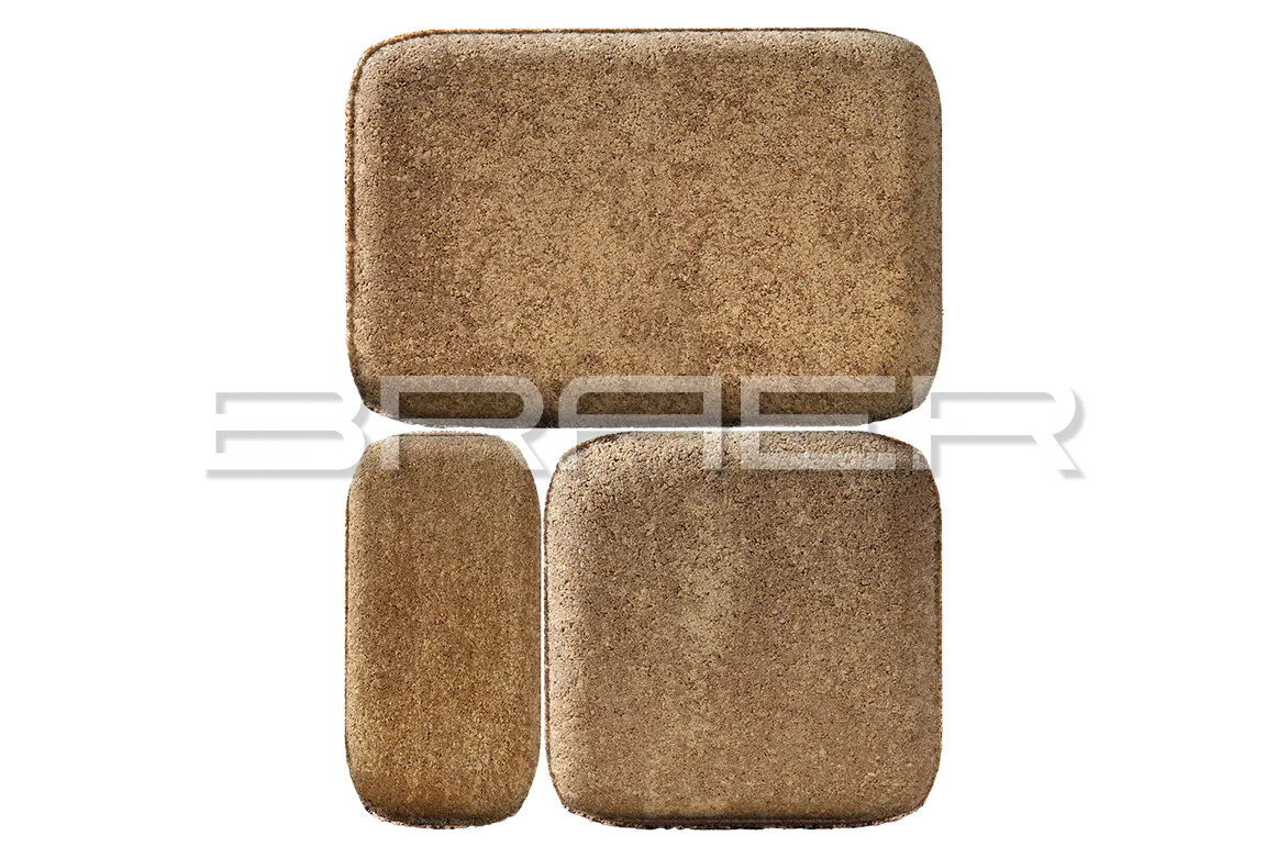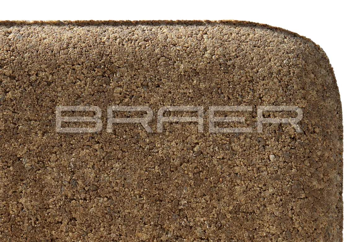 Тротуарная плитка BRAER состоит из 2 слоев: основного и лицевого. Технология двойного вибропрессования позволяет поэтапно уплотнить слои, что увеличивает прочность продукции. Основной слой содержит высокопрочный цемент и гранитный щебень, а лицевой (10% толщины) – мелкофракционный песок, белый цемент и пигменты.