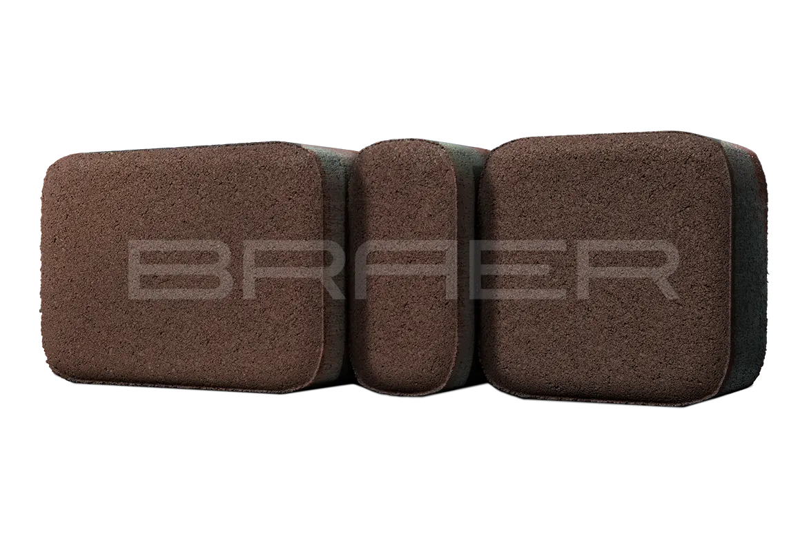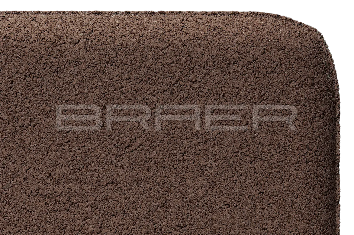 Тротуарная плитка BRAER состоит из 2 слоев: основного и лицевого. Технология двойного вибропрессования позволяет поэтапно уплотнить слои, что увеличивает прочность продукции. Основной слой содержит высокопрочный цемент и гранитный щебень, а лицевой (10% толщины) – мелкофракционный песок, белый цемент и пигменты.