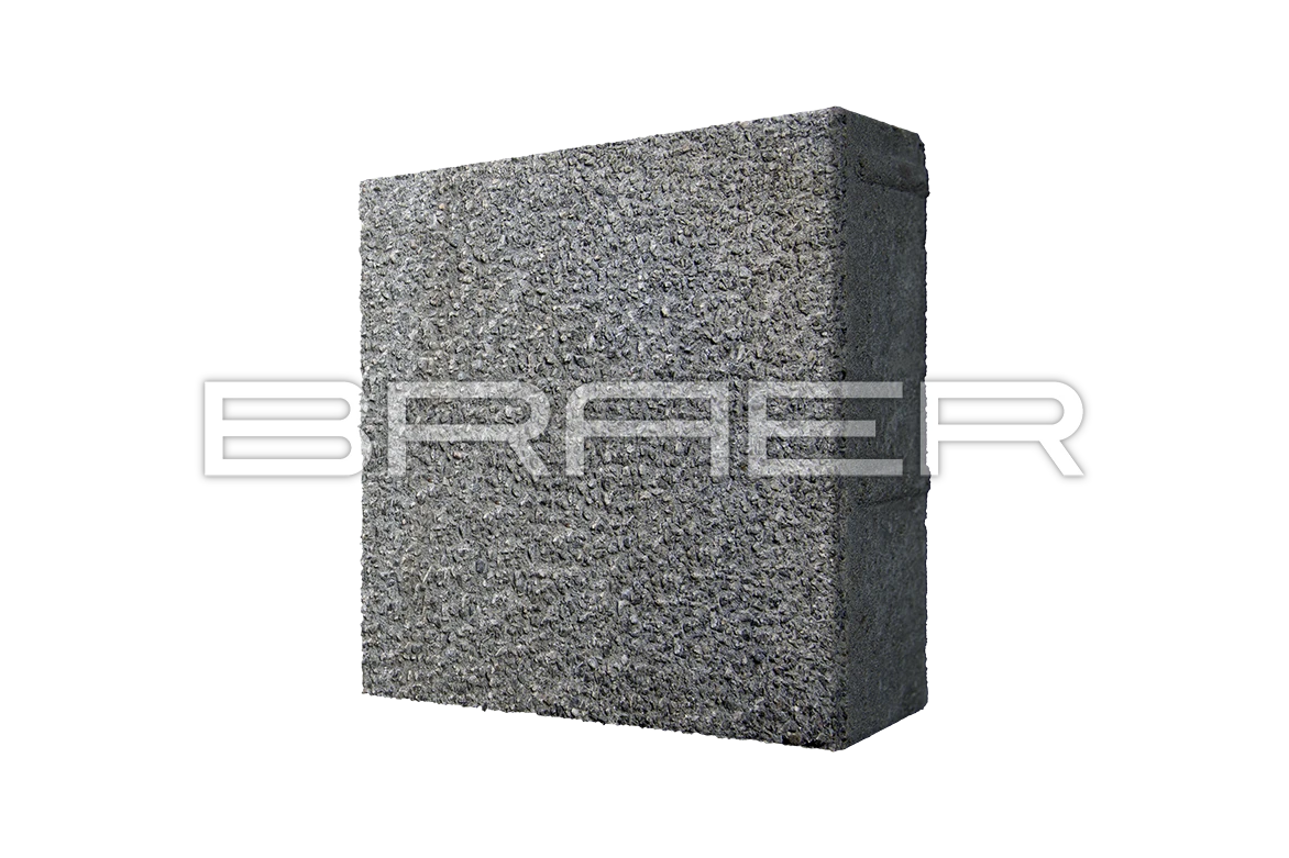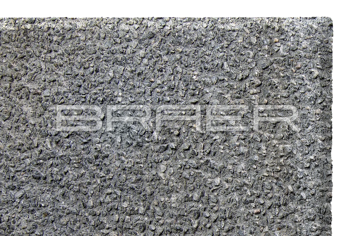 Тротуарные плиты BRAER состоят из двух слоев: основного и лицевого. Основной слой производится из высокопрочного цемента, гранитного щебня и гидронамывного песка. А лицевой слой из мелкофракционного песка, серого цемента с добавлением натуральных камней от 1 до 5 мм. Благодаря особой технологии обработки под напором воды частично отмывается поверхность бетона. Это позволяет получить характерный рельеф на поверхности плиты, имитирующий природный камень.