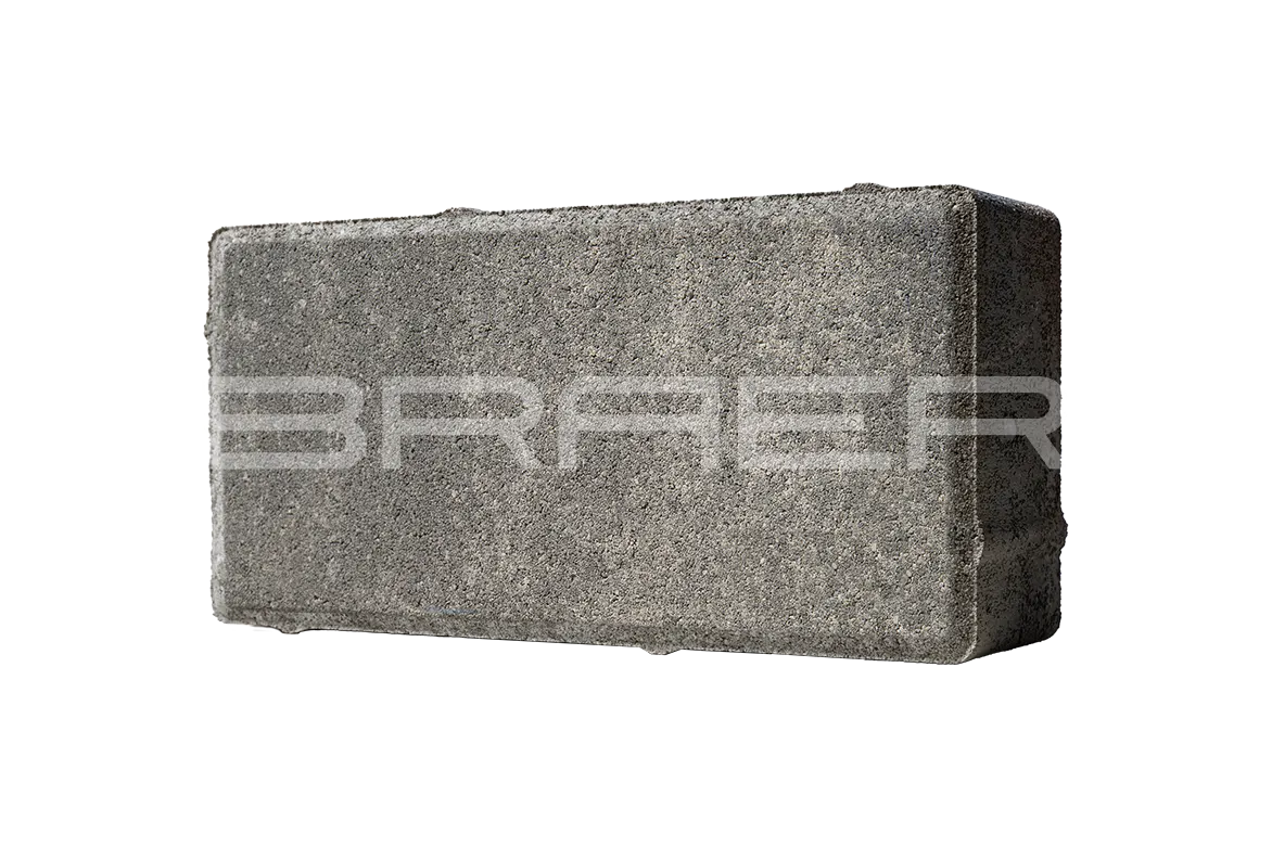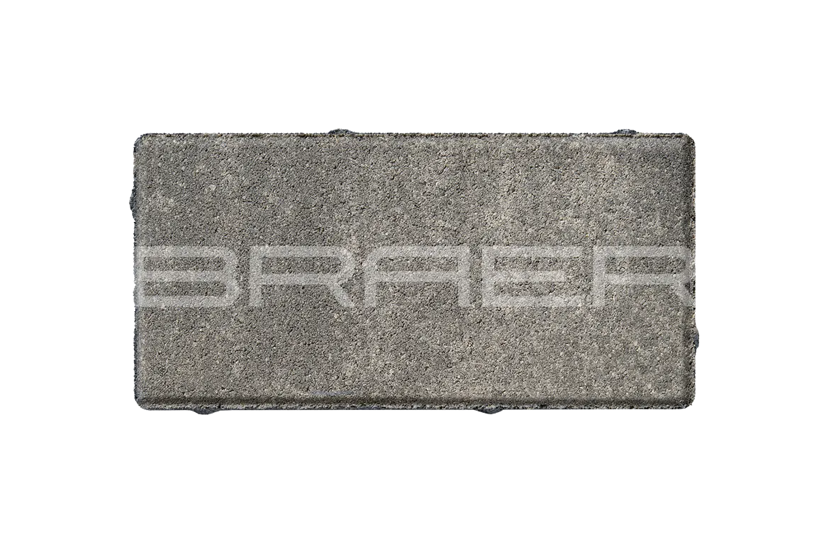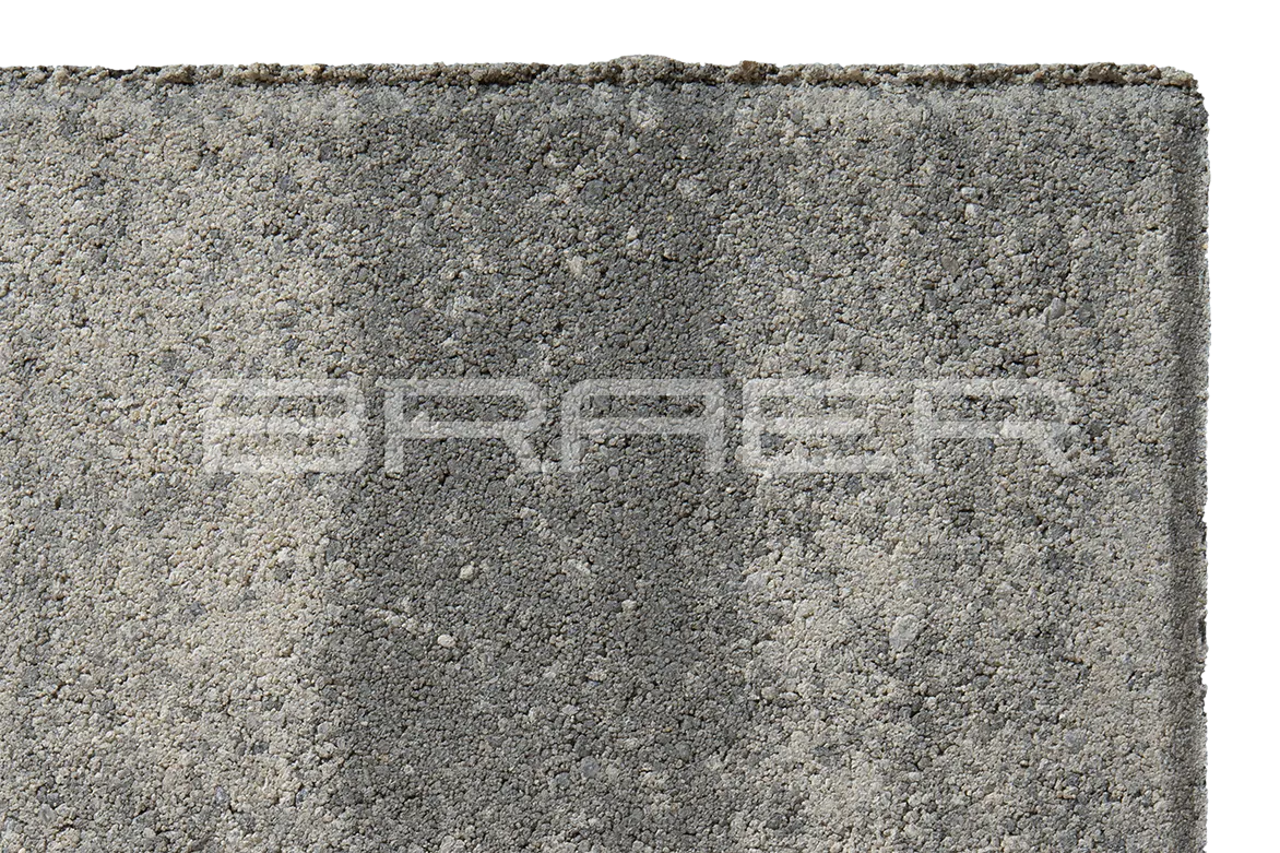 Тротуарная плитка BRAER состоит из 2 слоев: основного и лицевого. Технология двойного вибропрессования позволяет поэтапно уплотнить слои, что увеличивает прочность продукции. Основной слой содержит высокопрочный цемент и гранитный щебень, а лицевой (10% толщины) – мелкофракционный песок, белый цемент и пигменты.
