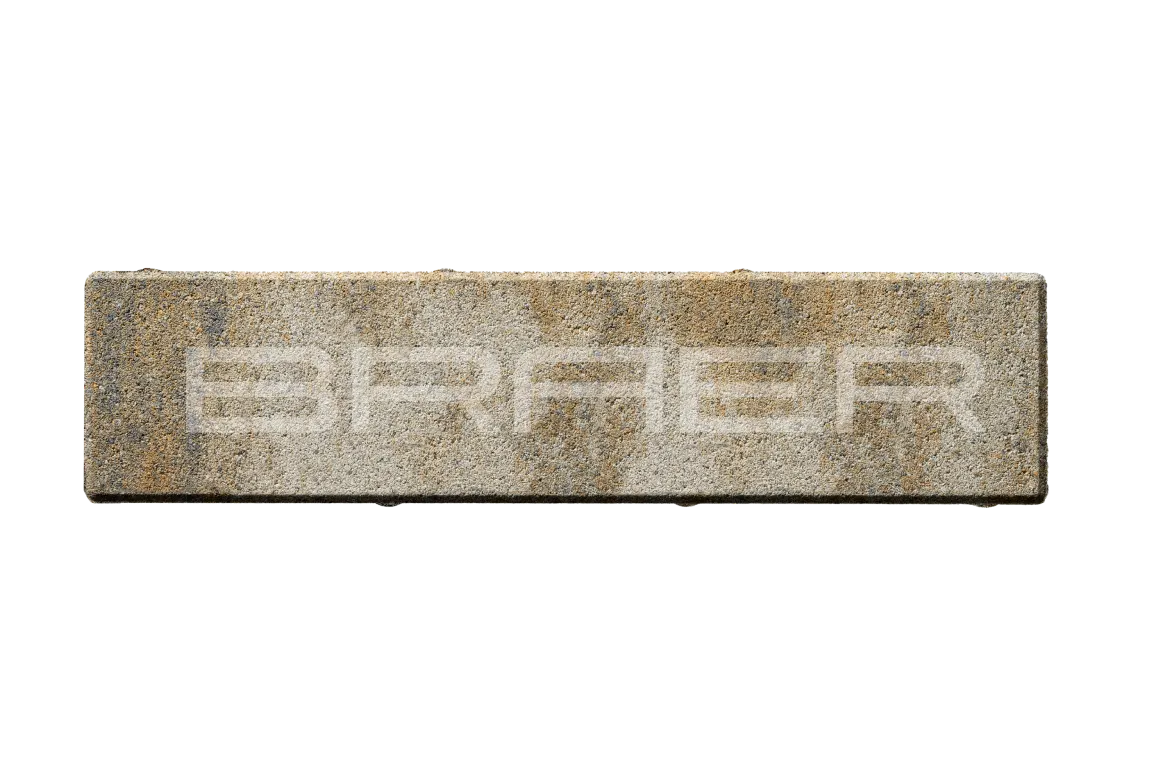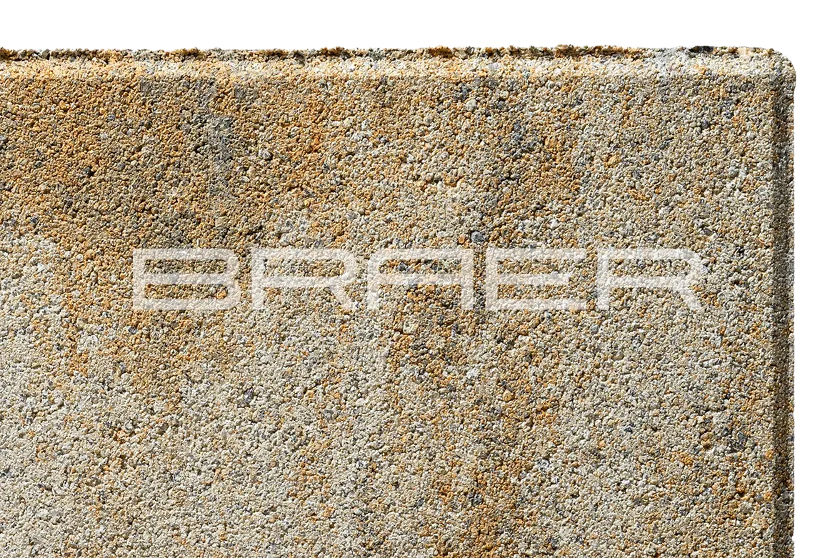 Тротуарная плитка BRAER состоит из 2 слоев: основного и лицевого. Технология двойного вибропрессования позволяет поэтапно уплотнить слои, что увеличивает прочность продукции. Основной слой содержит высокопрочный цемент и гранитный щебень, а лицевой (10% толщины) – мелкофракционный песок, белый цемент и пигменты.