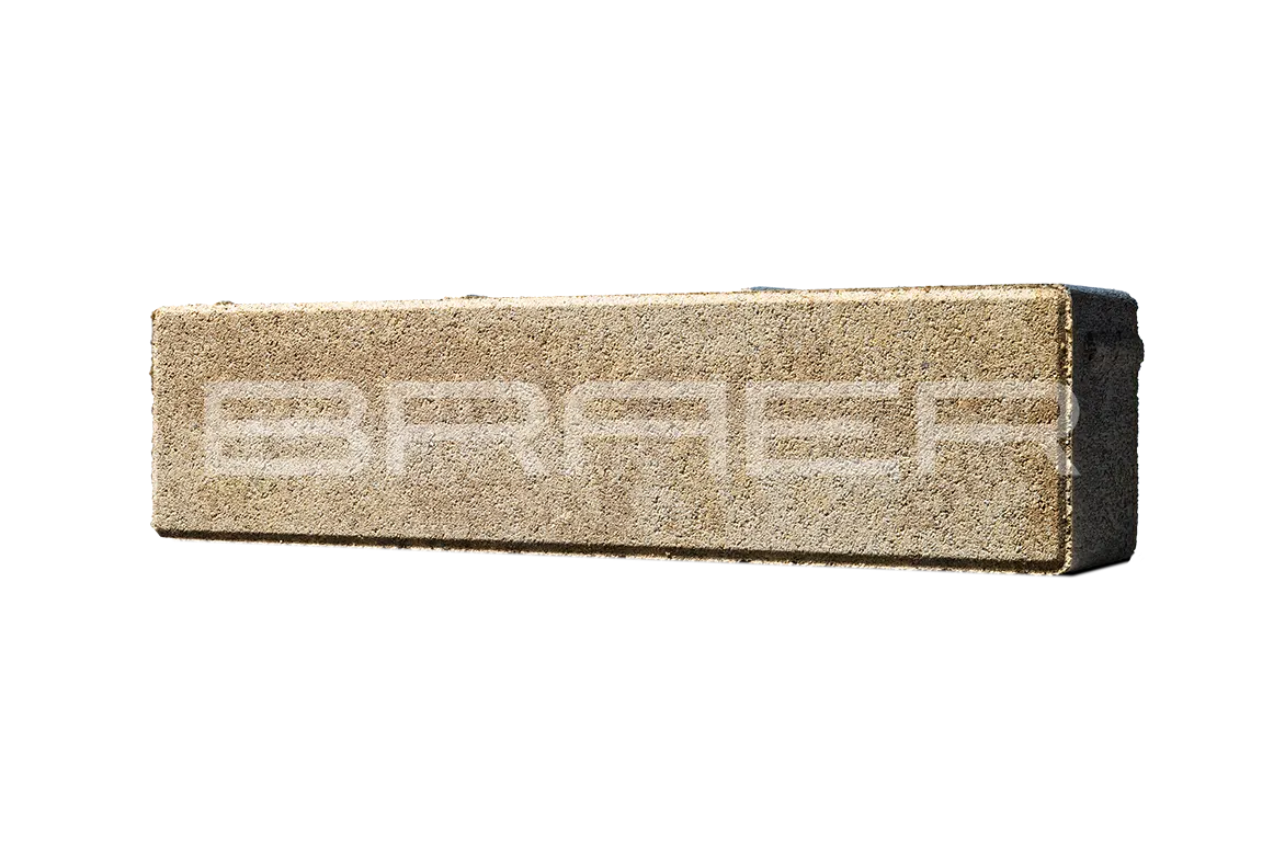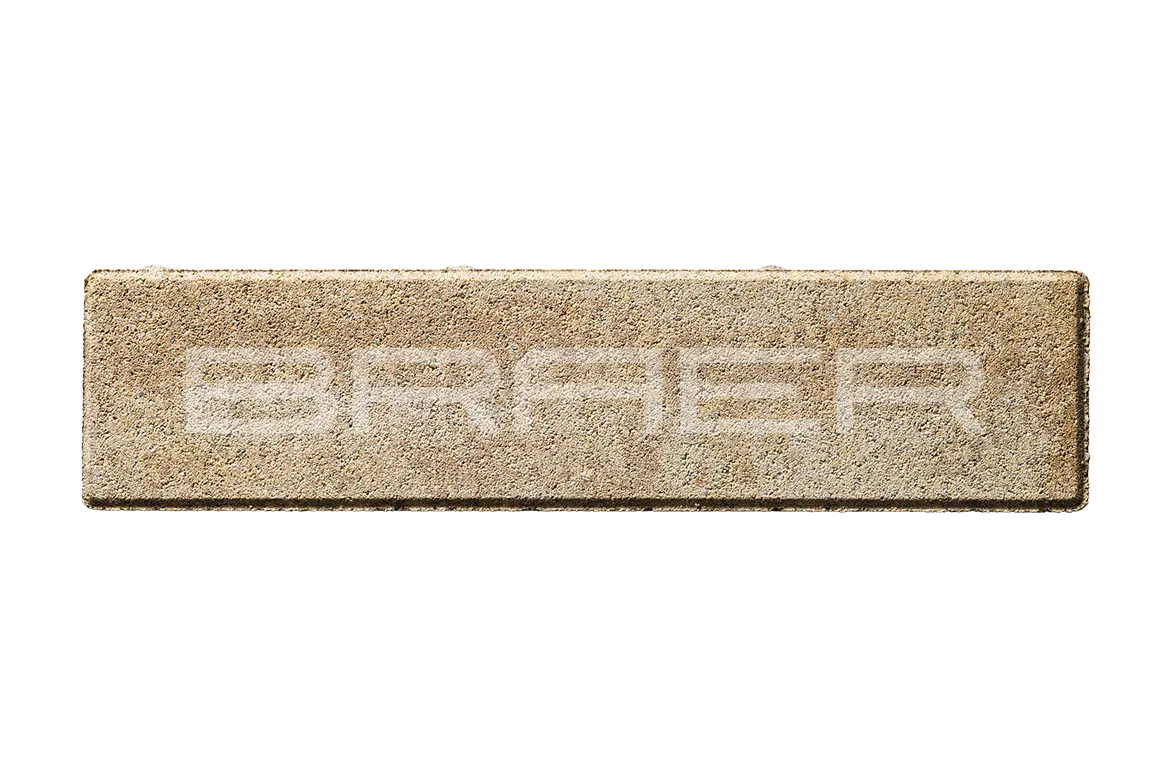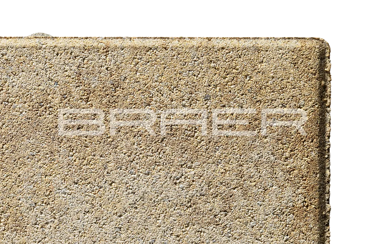 Тротуарная плитка BRAER состоит из 2 слоев: основного и лицевого. Технология двойного вибропрессования позволяет поэтапно уплотнить слои, что увеличивает прочность продукции. Основной слой содержит высокопрочный цемент и гранитный щебень, а лицевой (10% толщины) – мелкофракционный песок, белый цемент и пигменты.