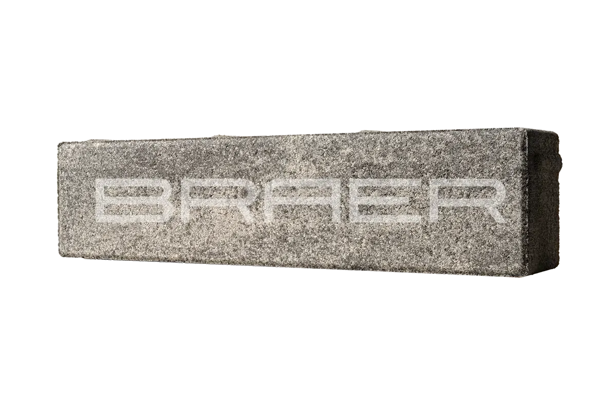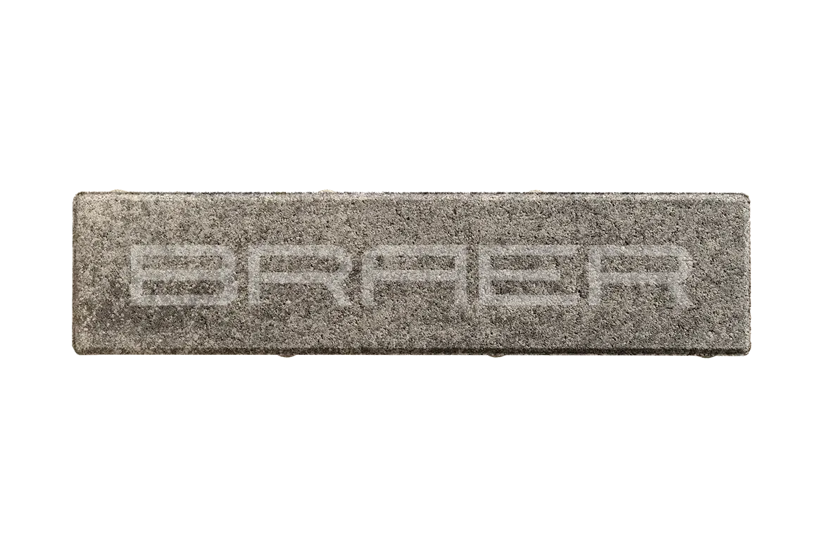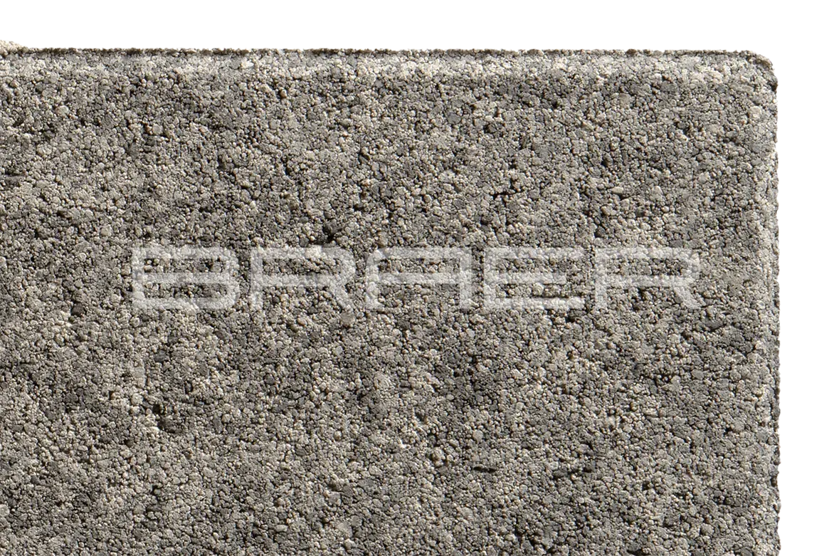 Тротуарная плитка BRAER состоит из 2 слоев: основного и лицевого. Технология двойного вибропрессования позволяет поэтапно уплотнить слои, что увеличивает прочность продукции. Основной слой содержит высокопрочный цемент и гранитный щебень, а лицевой (10% толщины) – мелкофракционный песок, белый цемент и пигменты.
