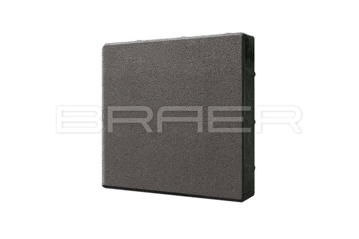 Тротуарная плитка BRAER состоит из 2 слоев: основного и лицевого. Технология двойного вибропрессования позволяет поэтапно уплотнить слои, что увеличивает прочность продукции. Основной слой содержит высокопрочный цемент и гранитный щебень, а лицевой (10% толщины) – мелкофракционный песок, белый цемент и пигменты.