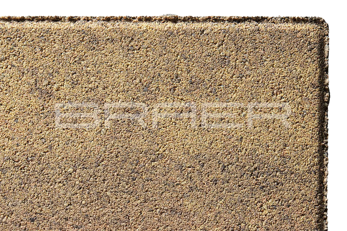 Тротуарная плитка BRAER состоит из 2 слоев: основного и лицевого. Технология двойного вибропрессования позволяет поэтапно уплотнить слои, что увеличивает прочность продукции. Основной слой содержит высокопрочный цемент и гранитный щебень, а лицевой (10% толщины) – мелкофракционный песок, белый цемент и пигменты.