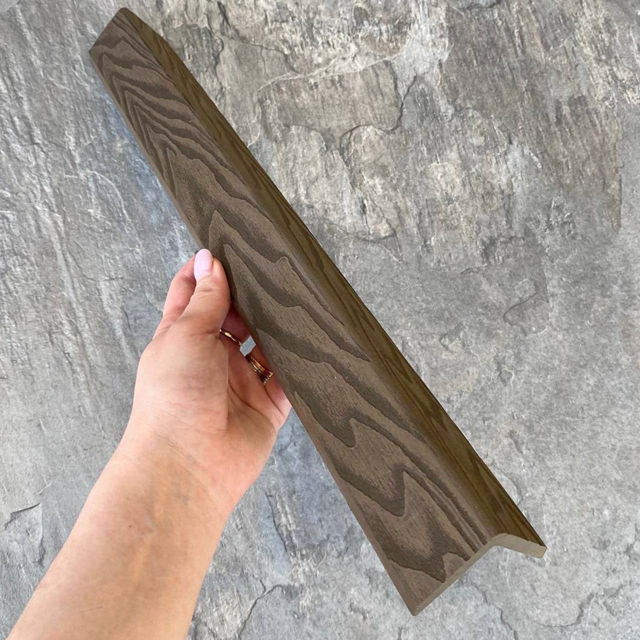 Угол EasyDecking Wood-X из древесно-полимерного композита ДПК. Доступный размер, мм: 50х50х3010. Длина 3 метра. Поверхность: рельефная 3Д фактура под дерево. Доступно 5 цветов. Используется для обработки лицевых и торцевых сторон террасной доски EasyDecking Wood-X