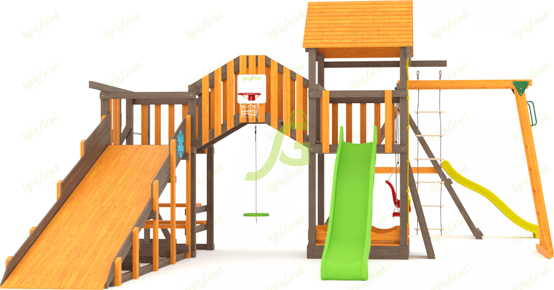 Обращаем Ваше внимание, что цвет установленной детской площадки может отличаться от представленных изображений на сайте. Специфика окраски нетоксичными пропитками допускает отклонения в цветовой гамме отгружаемых изделий вследствие различного цвета натурального природного сырья и естественных компонентов, используемых для производства площадок.