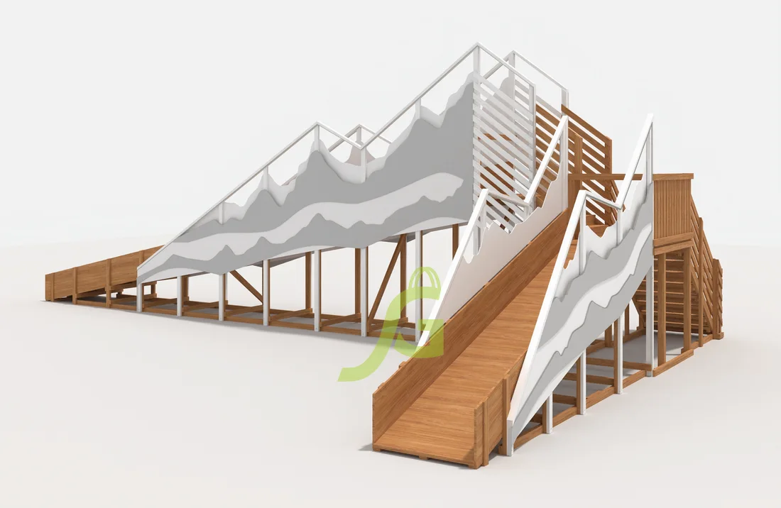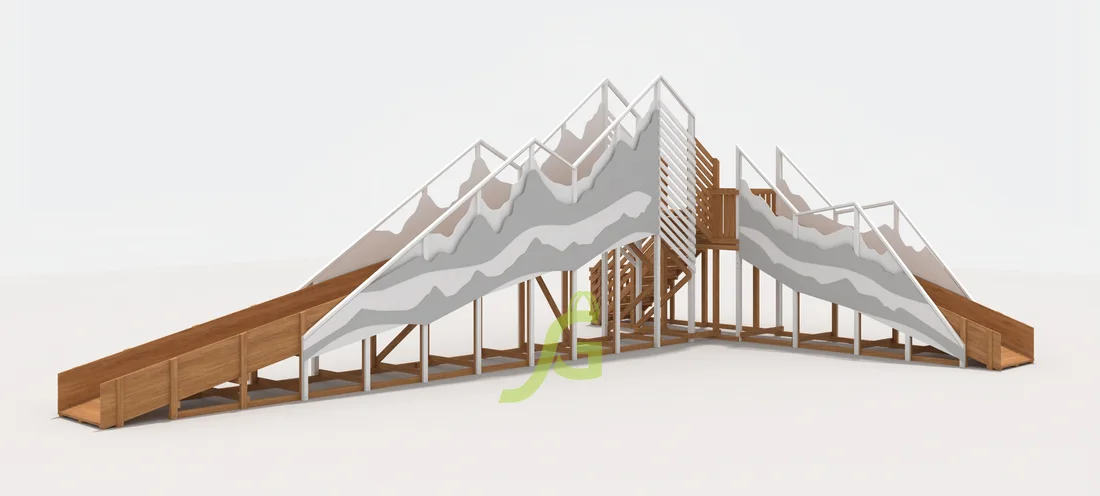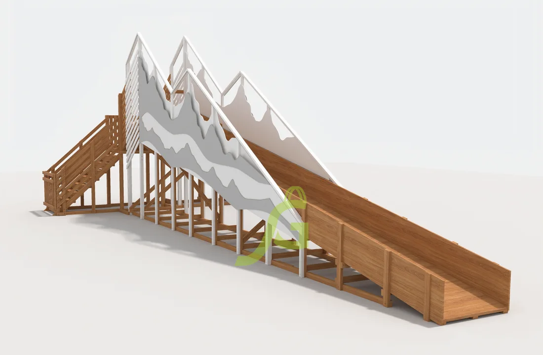 Характеристики зимней деревянной горки “Snow Fox 12 м” с двумя скатами мод.524
