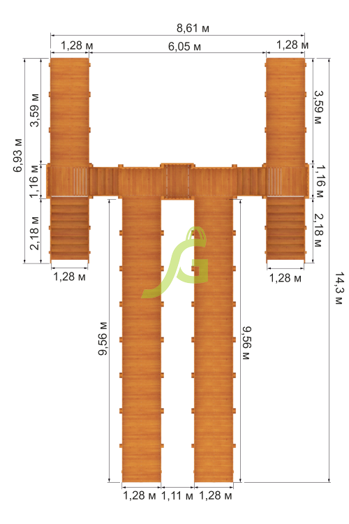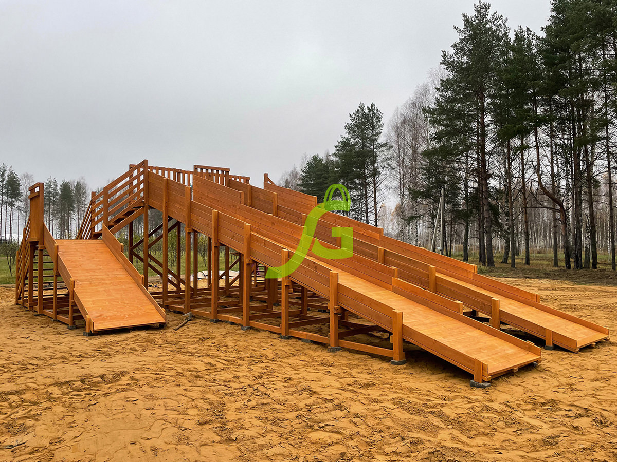 Представленная деревянная горка отличается высоким уровнем функциональности. В своей комплектации она имеет два больших ската по 10,0 м – они предназначены для детей старшего возраста и взрослых. Два маленьких ската по 4,0 м – идеальны для детей дошкольного и младшего школьного возраста.